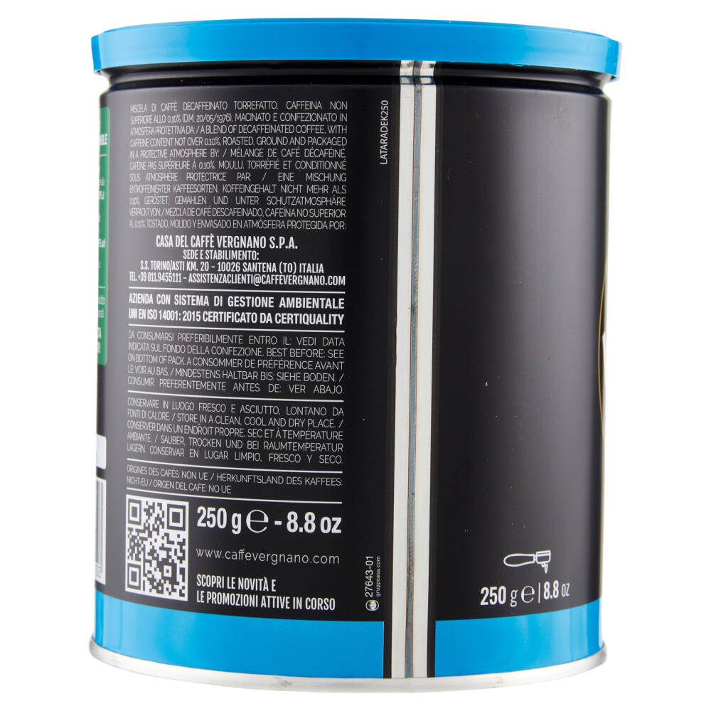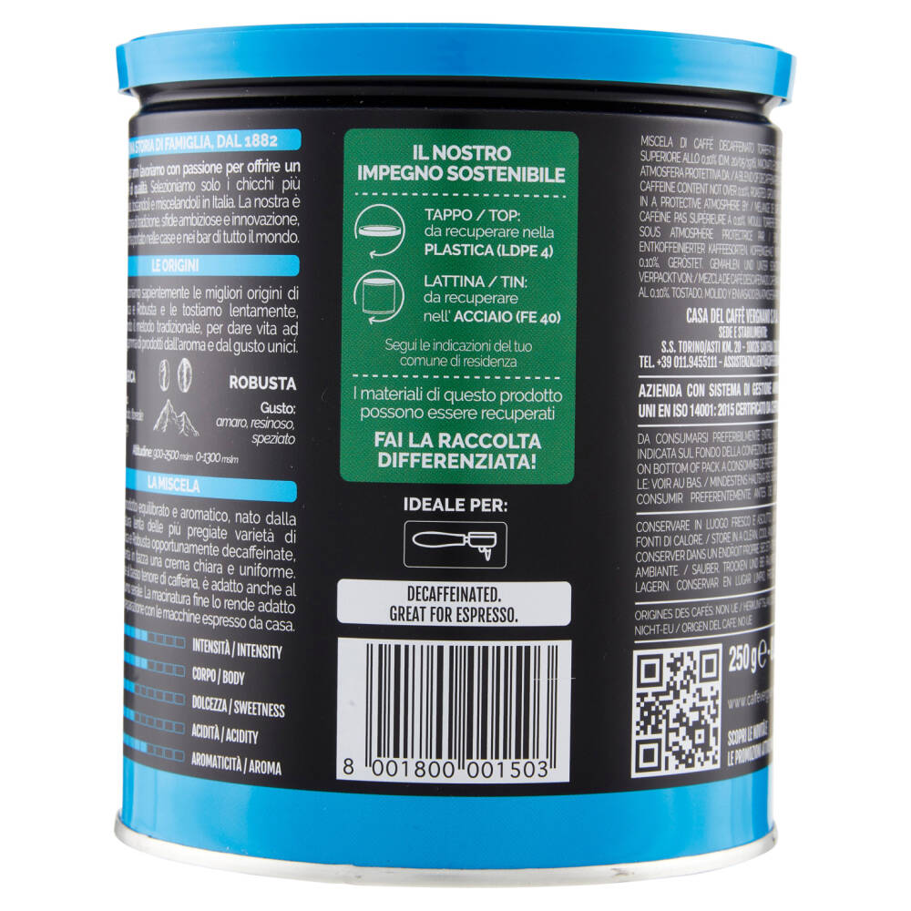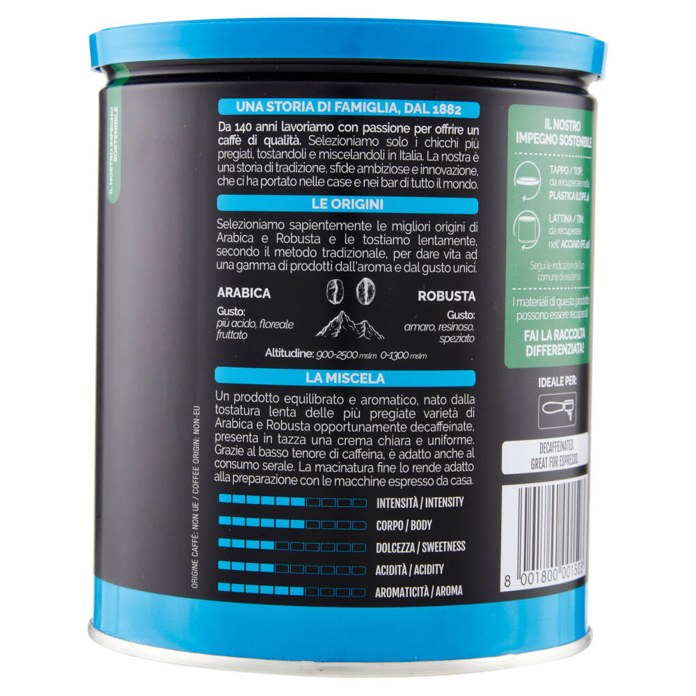 Miscela di caffè decaffeinato torrefatto, caffeina non superiore allo 0,10% (D.M. 20/05/1976), macinato e confezionato in atmosfera protettiva da: