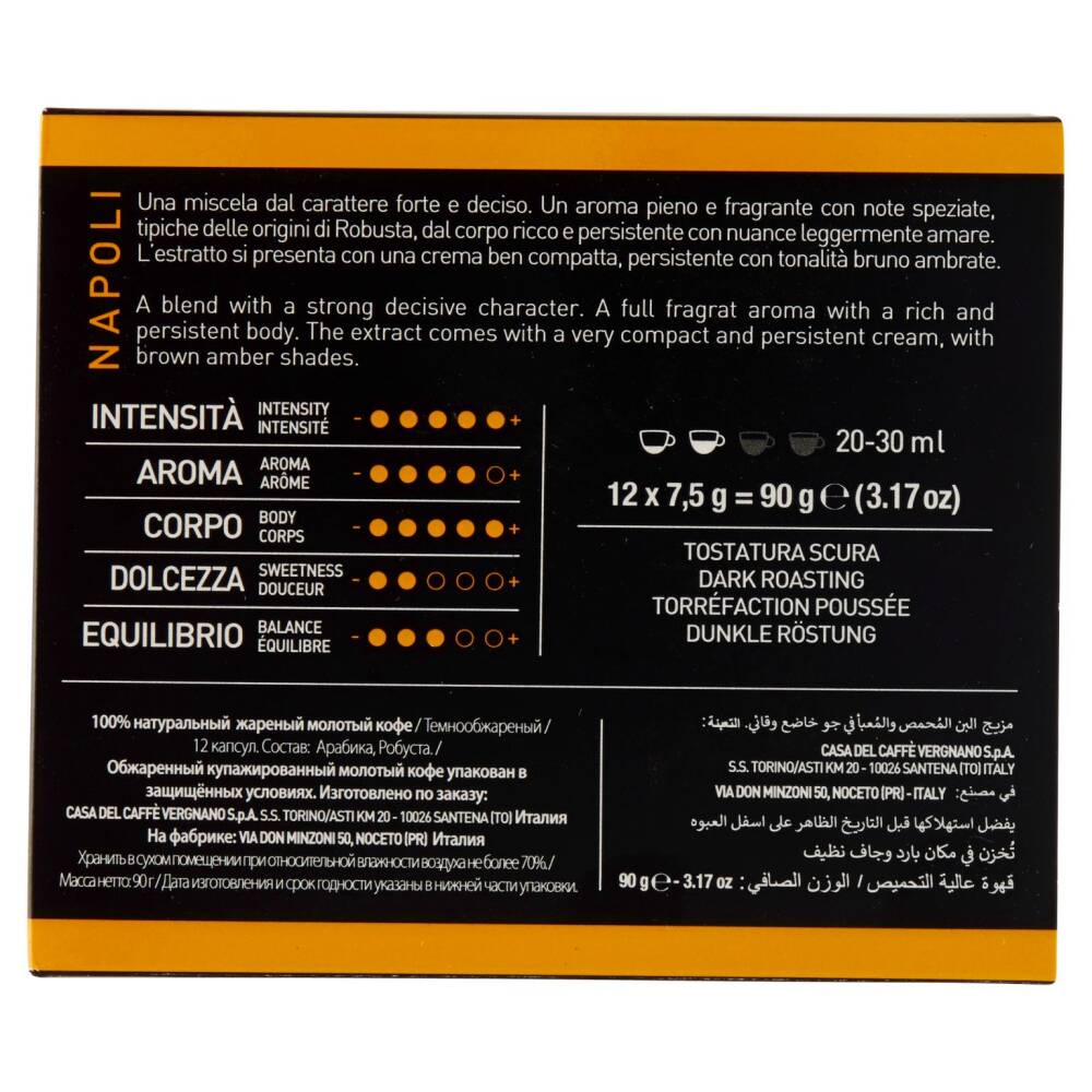 12 capsule di pregiate origini, accuratamente selezionate e tostate per preparare il miglior caffè espresso italiano.