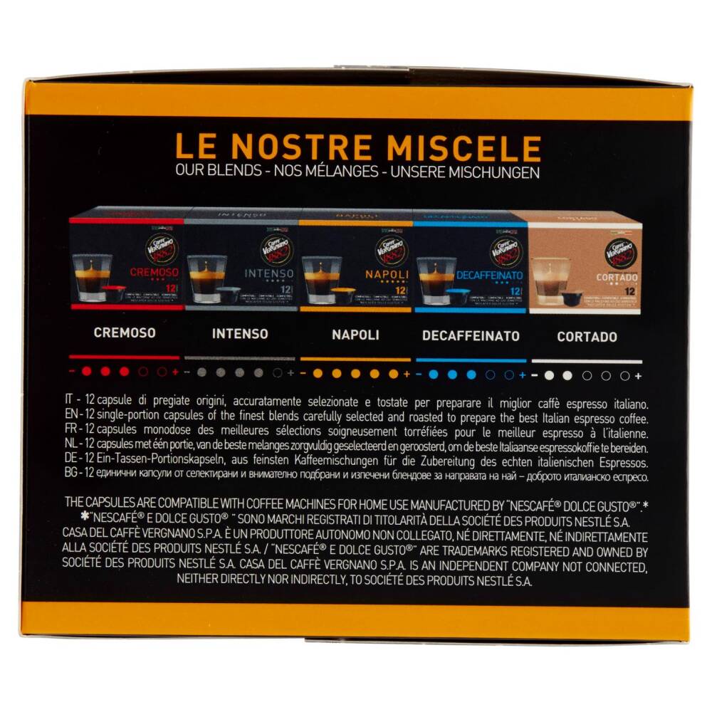 *"Nescafé e Dolce Gusto" sono marchi registrati di titolarità della Société des Produits Nestlé S.A. Casa del Caffè Vergnano S.P.A. è un produttore autonomo non collegato, né direttamente, né indirettamente alla Société des Produits Nestlé S.A.