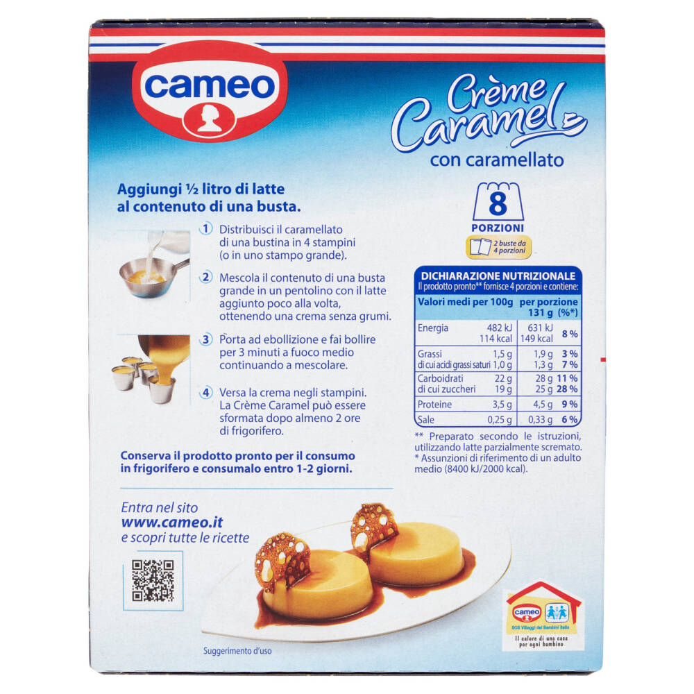 | **Preparato secondo le istruzioni, utilizzando latte parzialmente scremato | |||