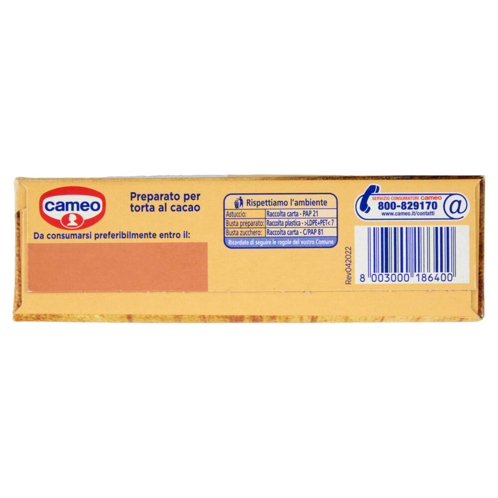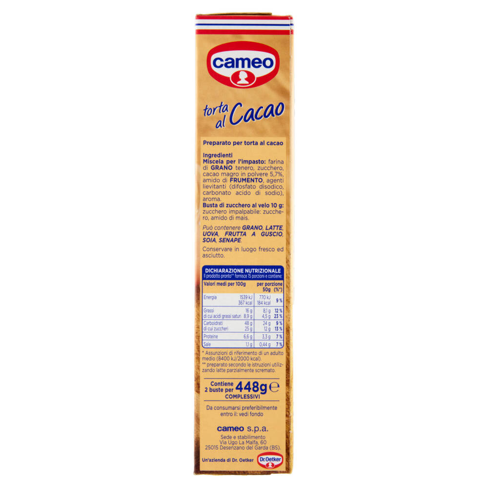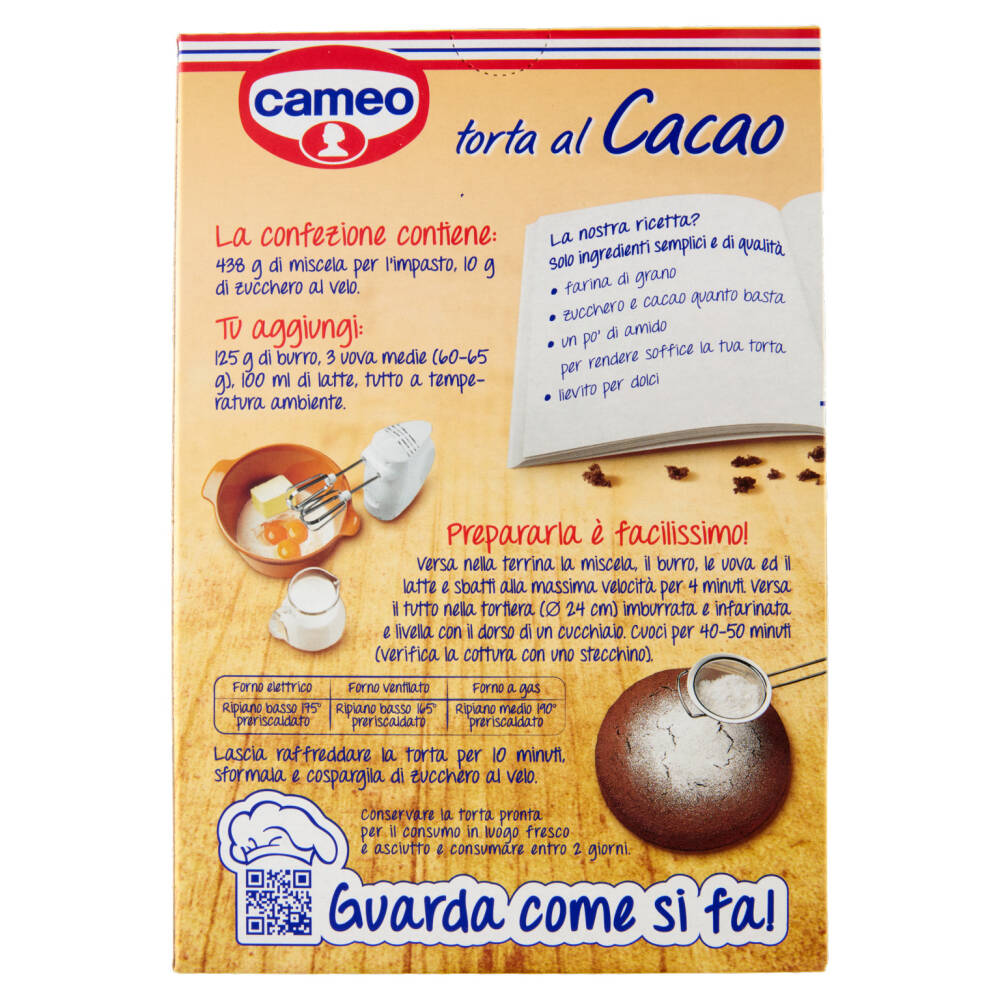 Miscela per l'impasto: farina di grano tenero, zucchero, cacao magro in polvere 5,7%, amido di frumento, agenti lievitanti (difosfato disodico, carbonato acido di sodio), aroma