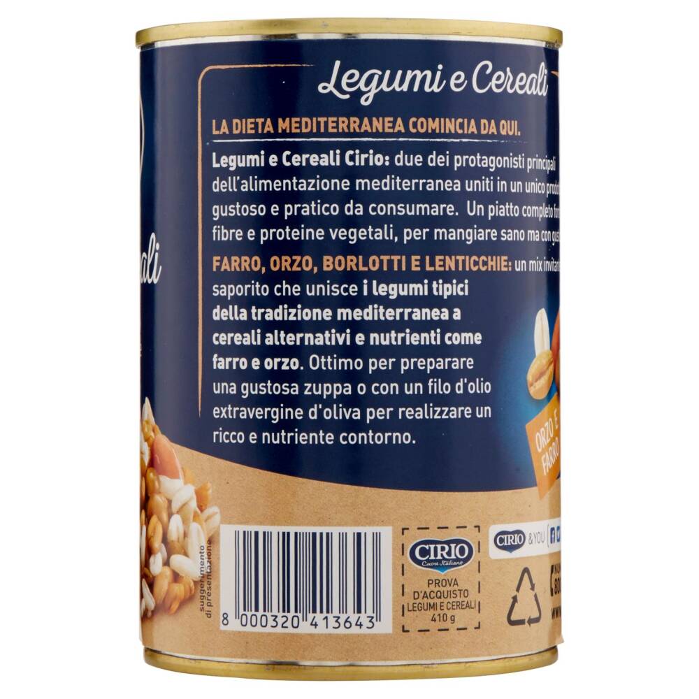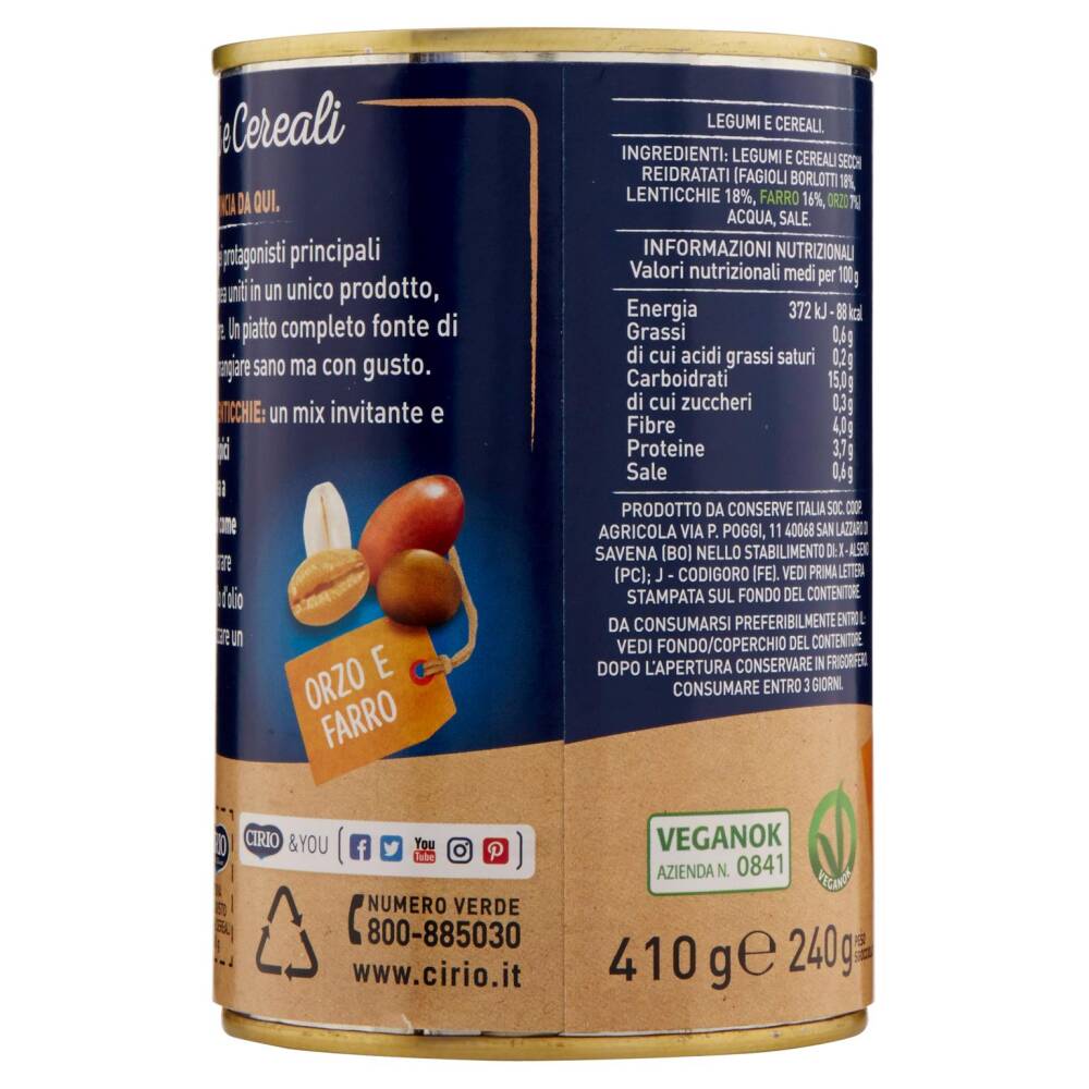 Legumi e Cereali Cirio: due dei protagonisti principali dell'alimentazione mediterranea uniti in un unico prodotto, gustoso e pratico da consumare. Un piatto completo fonte di fibre e proteine vegetali, per mangiare sano ma con gusto.