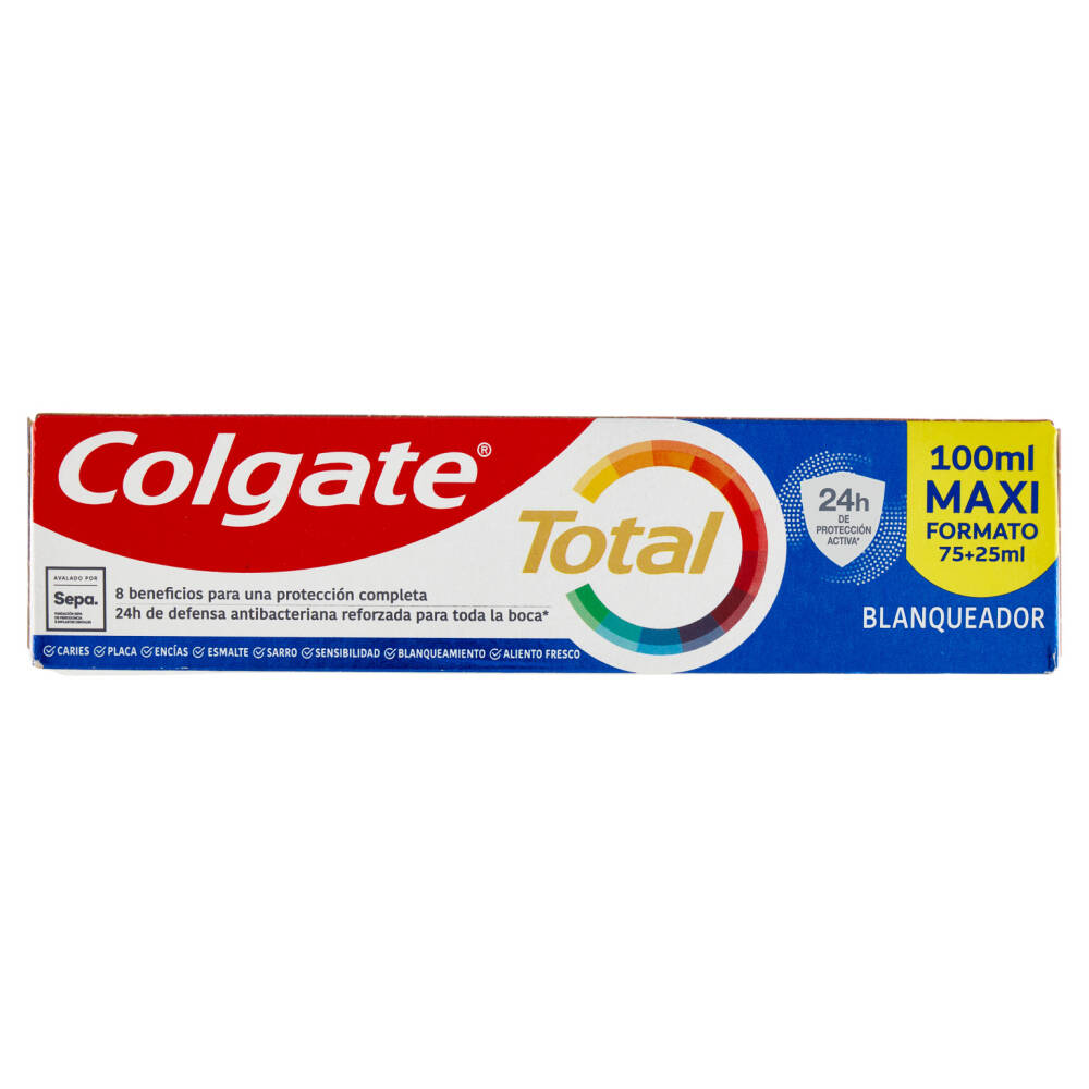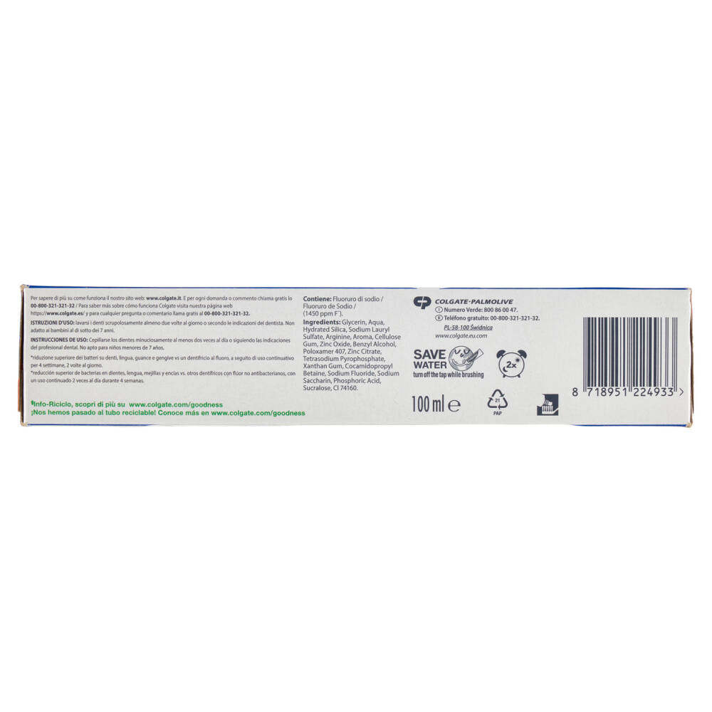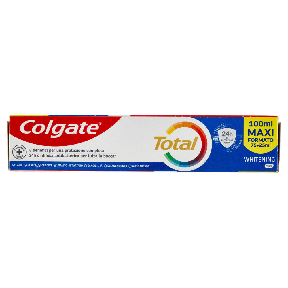 100ml - Maxi formato - 75+25ml 24h di protezione attiva* Clinicamente provato 8 Benefici per una protezione completa 24h di difesa antibatterica per tutta la bocca* - Carie - Placca - Gengive - Smalto - Tartaro - Sensibilità - Sbiancamento - Alito fresco *riduzione superiore dei batteri su denti, lingua, guance e gengive vs un dentifricio al fluoro, a seguito di uso continuativo per 4 settimane, 2 volte al giorno