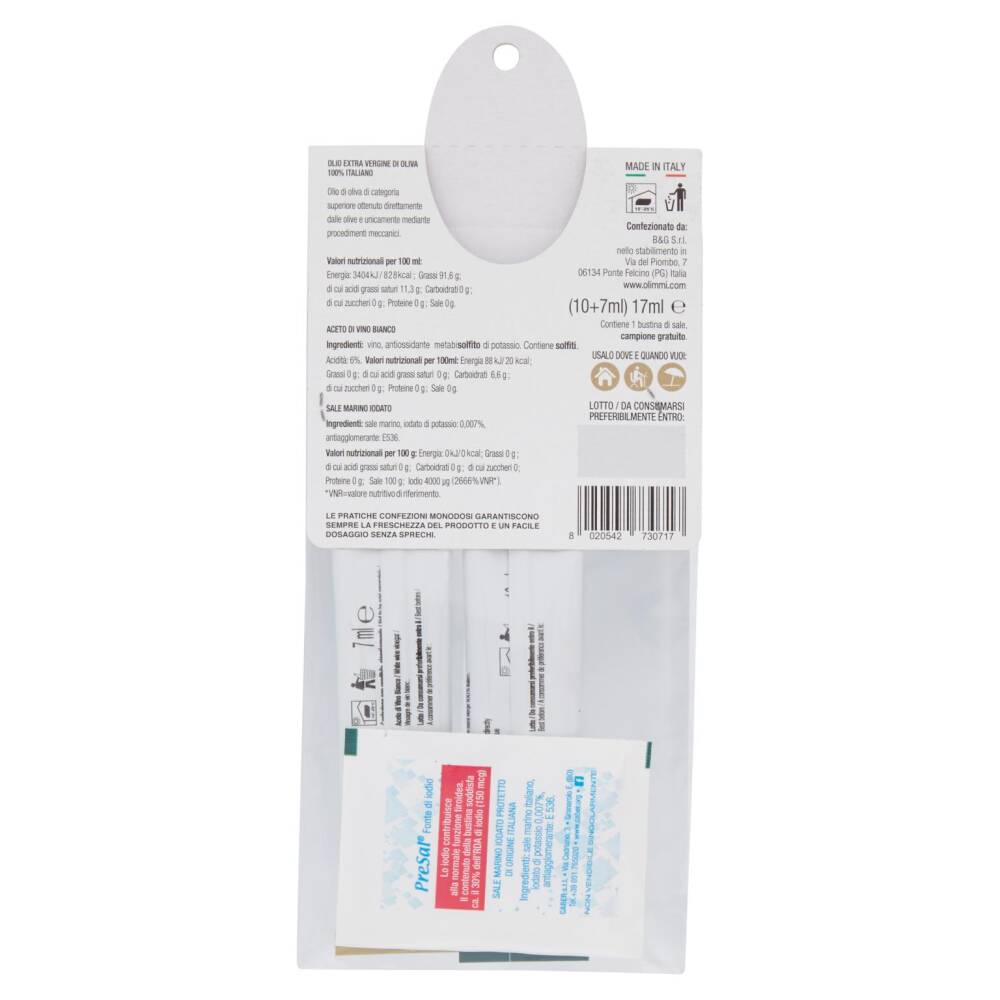 - Olio extravergine di oliva 100% italiano - Aceto di vino bianco - Sale marino iodato Ovunque tu sia