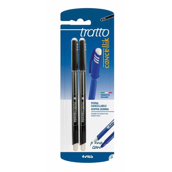 Confezione 2 penne NERE cancellabili tratto cancellik con gomma