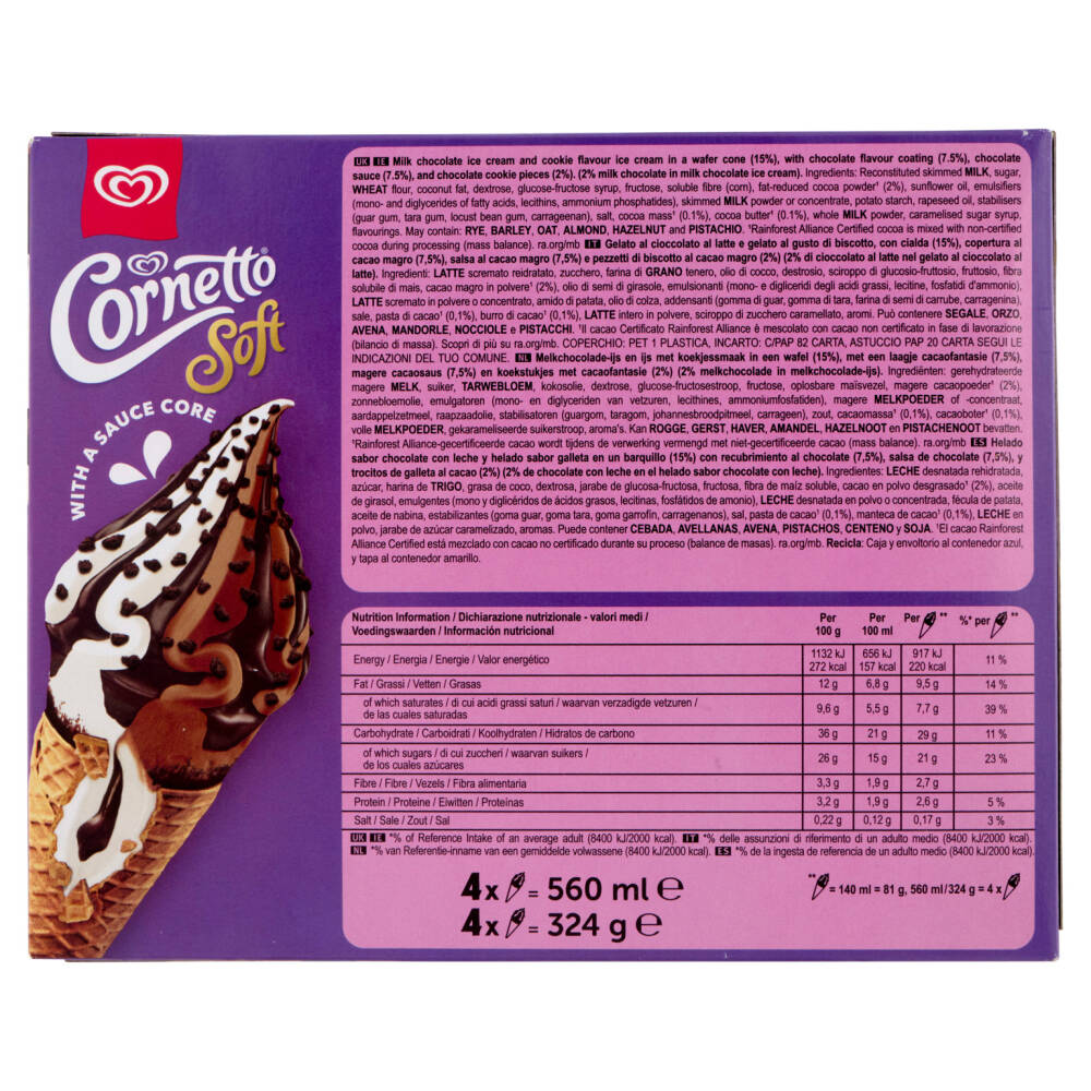 | **Cornetto = 140 ml = 81 g, 560 ml/324 g = 4 x Cornetto |