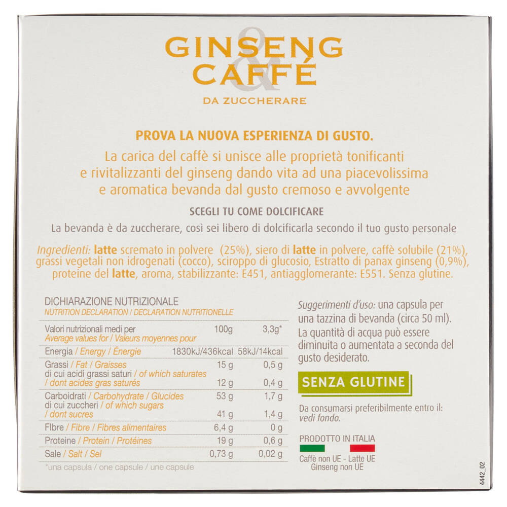 La carica del caffè si unisce alle proprietà tonificanti e rivitalizzanti del ginseng dando vita ad una piacevolissima e aromatica bevanda dal gusto cremoso e avvolgente