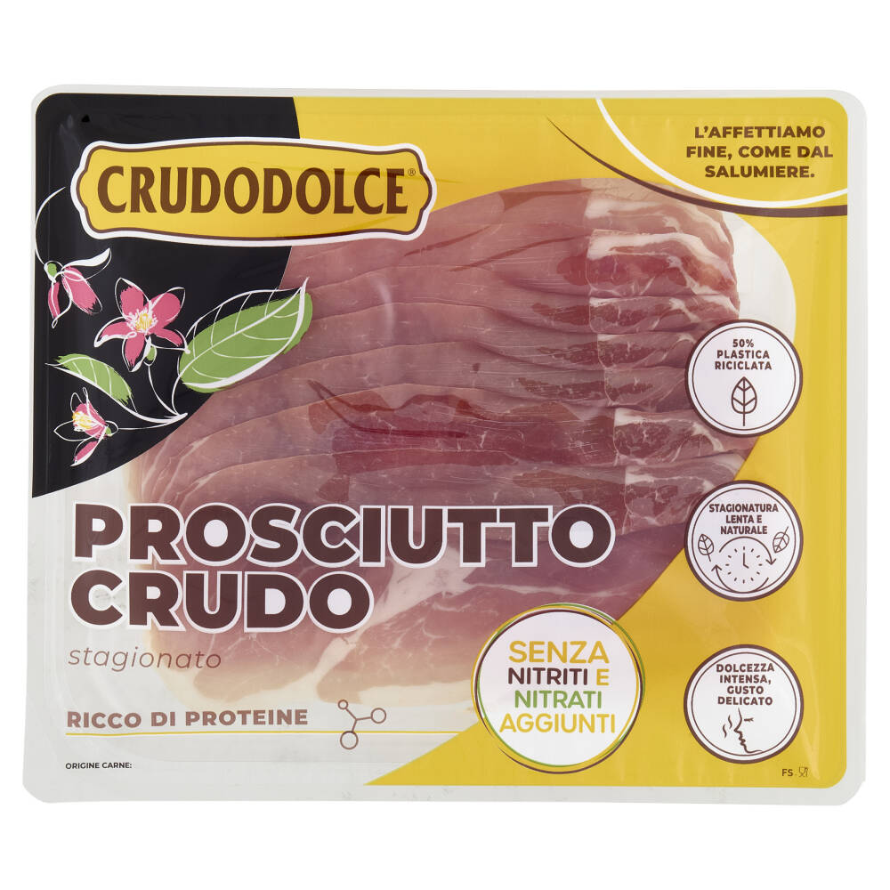 L'affettiamo fine, come dal salumiere 50% Plastica riciclata Stagionatura lenta e naturale Dolcezza intensa, gusto delicato Senza nitriti e nitrati aggiunti Ricco di proteine Origine di carne: UE