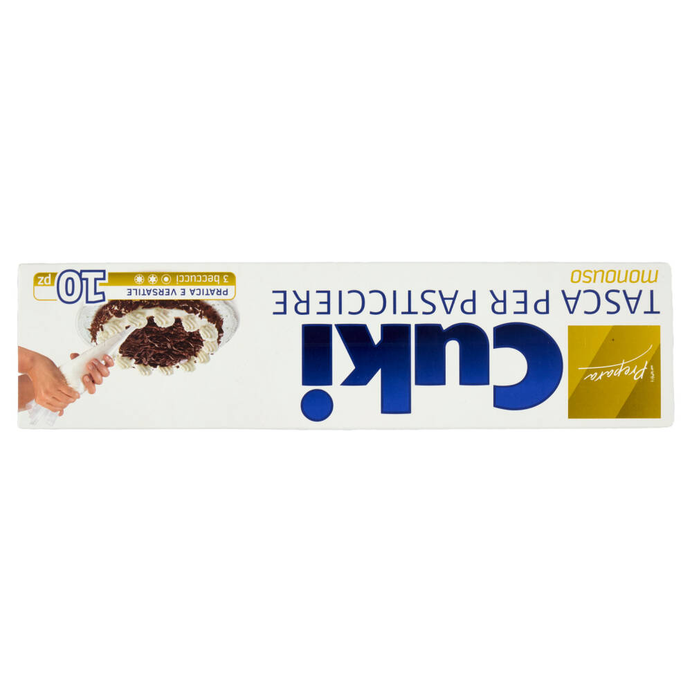 Le nuove Tasche per Pasticciere Cuki sono realizzate in polietilene trasparente. Pratiche e versatili sono monouso, ti evitano quindi noiose pulizie dopo l'utilizzo. Ogni confezione contiene inoltre tre beccucci con forme diverse tra cui scegliere a seconda della decorazione che vorrai realizzare.