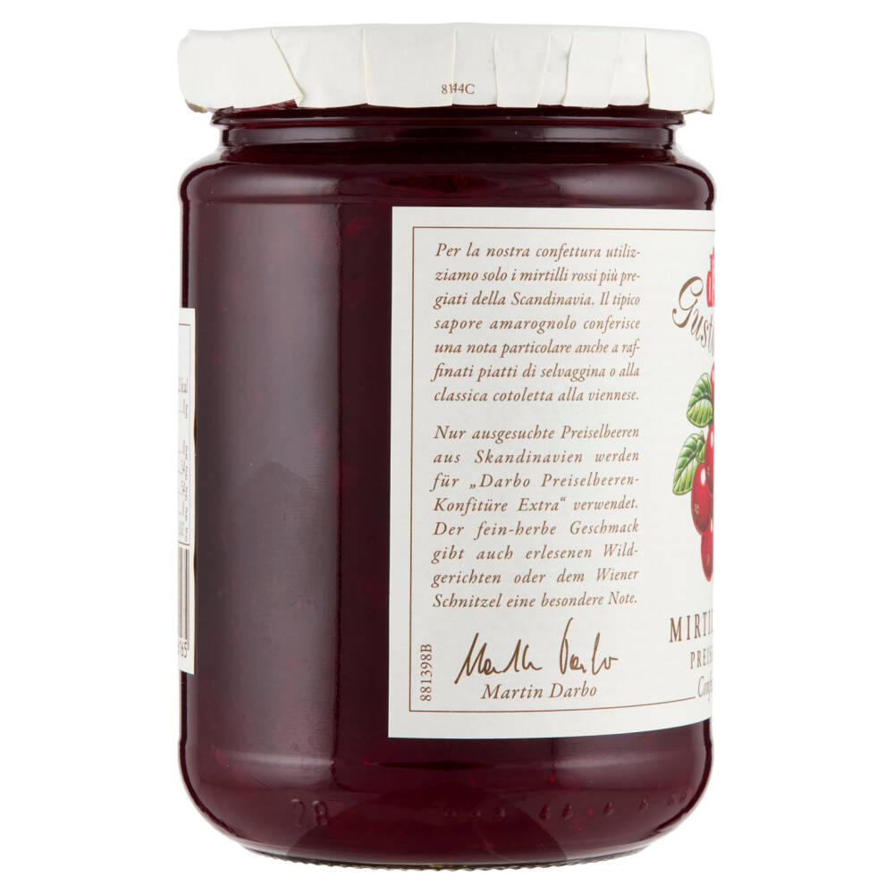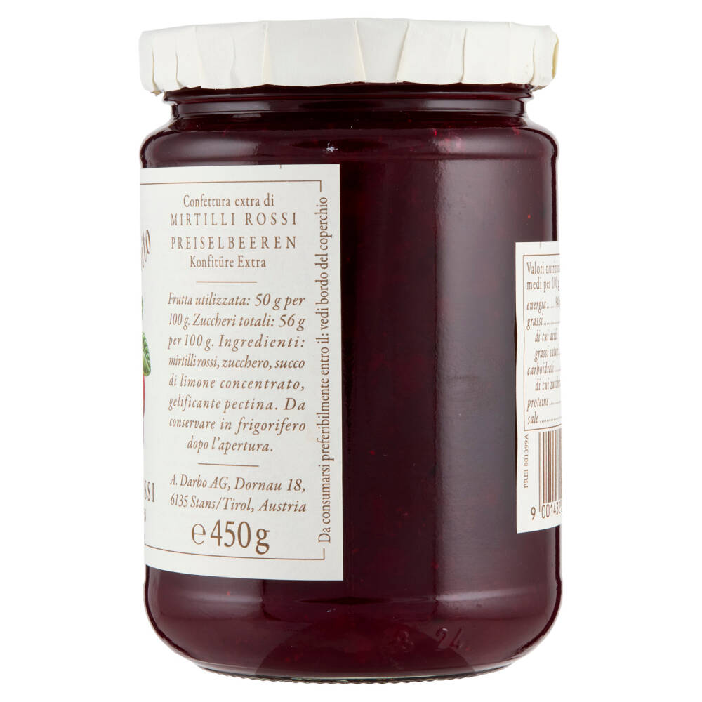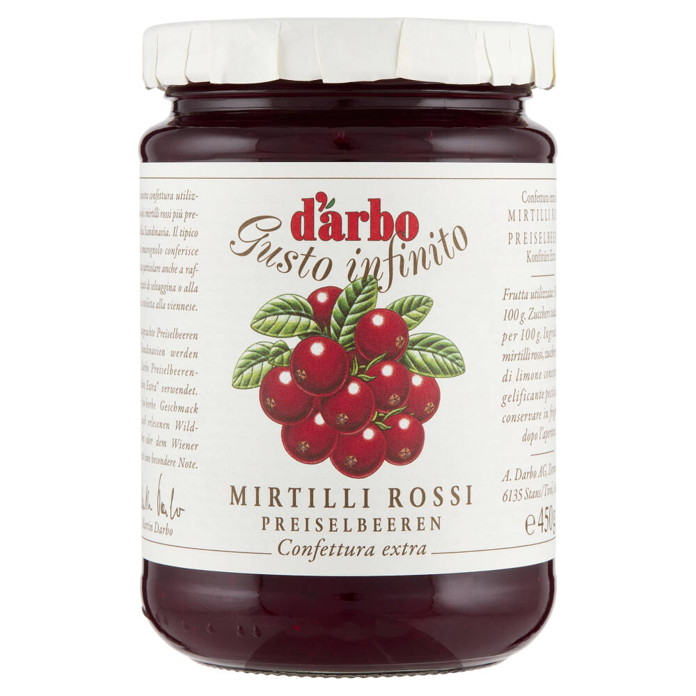 Per la nostra confettura utilizziamo solo i mirtilli rossi più pregiati della Scandinavia. Il tipico sapore amarognolo conferisce una nota particolare anche a raffinati piatti di selvaggina o alla classica cotoletta alla viennese.