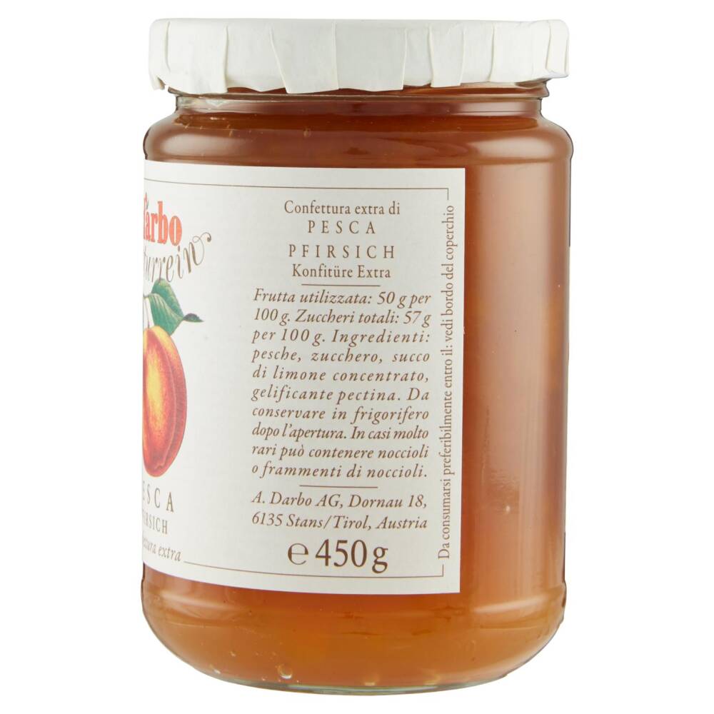 Pesche Zucchero Succo di limone concentrato Gelificante pectina Frutta utilizzata: 50 g per 100 g Zuccheri totali: 57 g per 100 g
