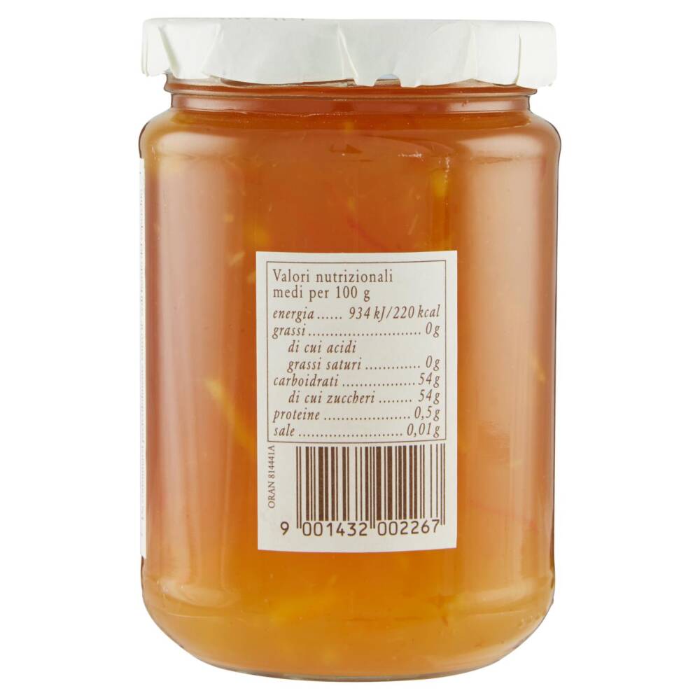 Zucchero Arance Acqua Succo di limone concentrato Gelificante pectina Frutta utilizzata: 35 g per 100 g Zuccheri totali: 58 g per 100 g