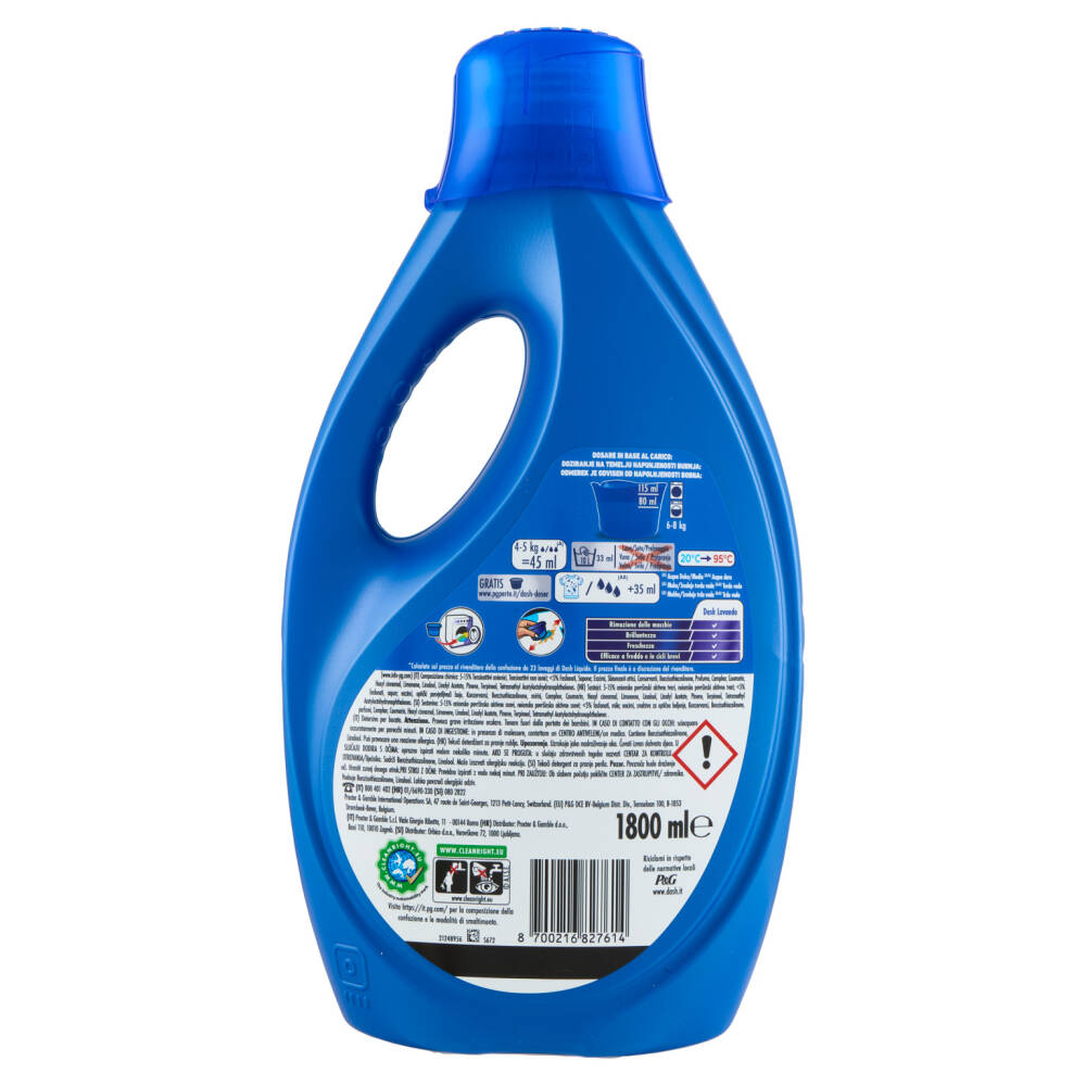 Formato convenienza* Smacchia e igienizza in 1 solo lavaggio 40 Lavaggi *Calcolato sul prezzo al rivenditore della confezione da 23 lavaggi di Dash Liquido. Il prezzo finale è a discrezione del rivenditore