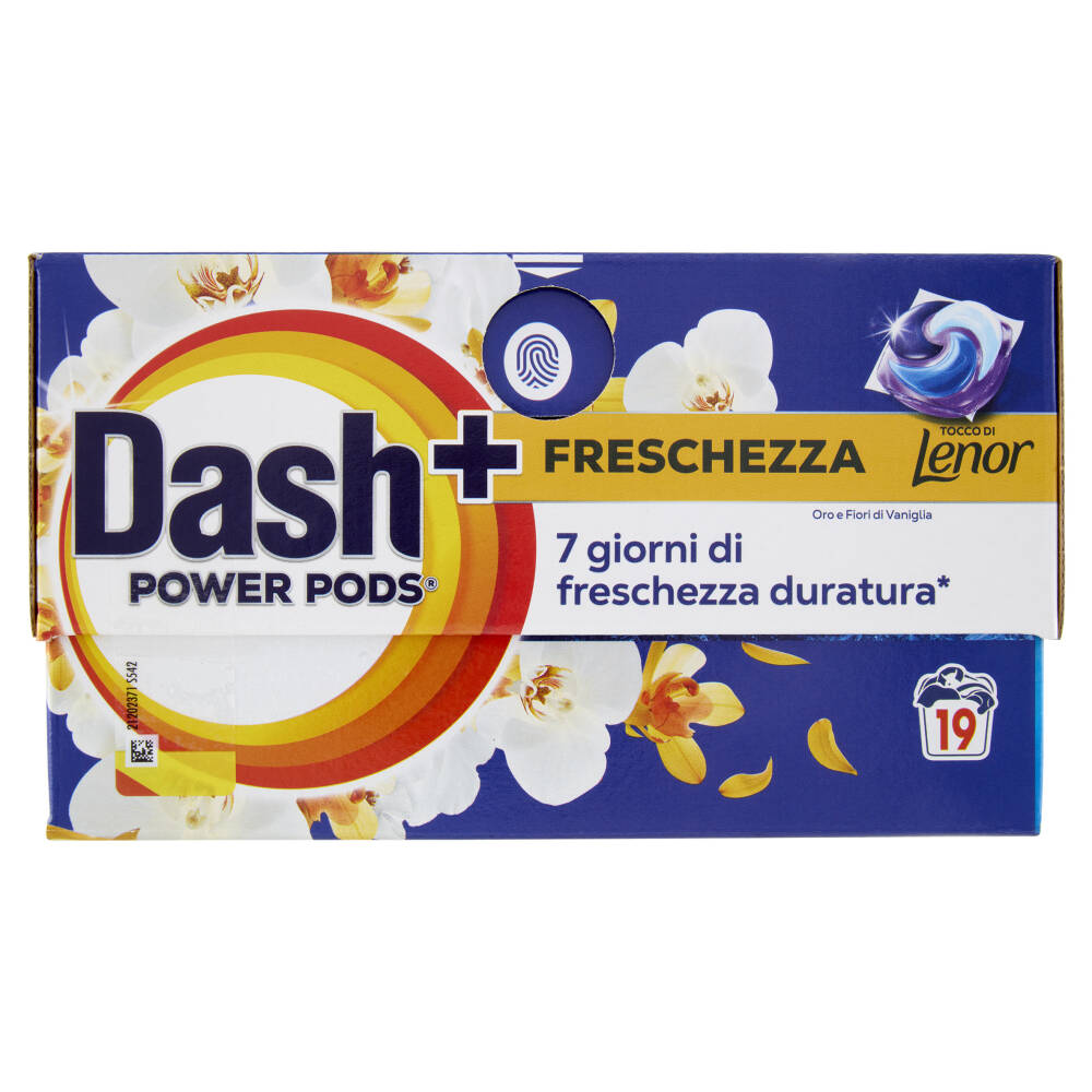+ Freschezza Tocco di Lenor Oro e Fiori di Vaniglia 7 Giorni di freschezza duratura* 19 Lavaggi Chiusura sicura per bambini Secureclic box Confezione resistente all'umidità *nel guardaroba
