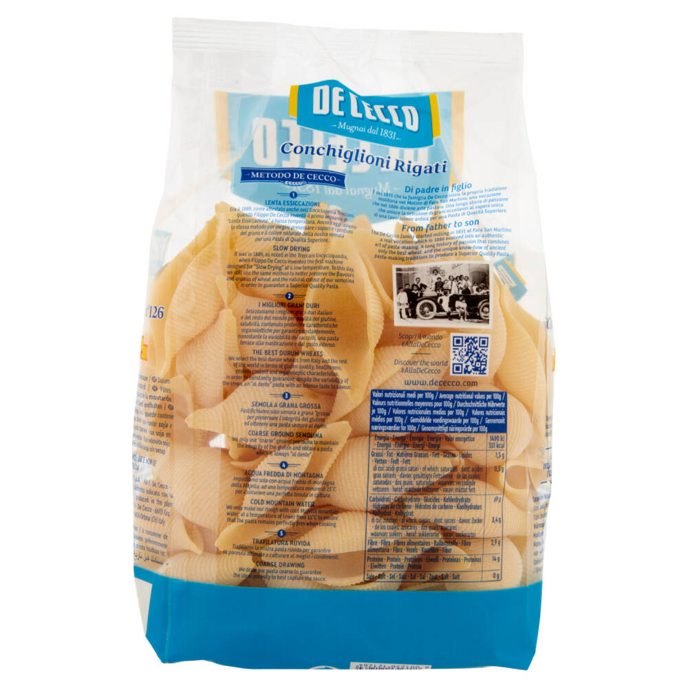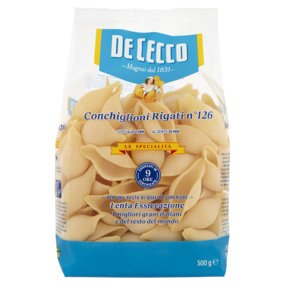 Cottura 12 min - Al dente 10 min Essiccati in 9 ore certificate Per una pasta di qualità superiore Lenta Essiccazione I migliori grani italiani e del resto del mondo
