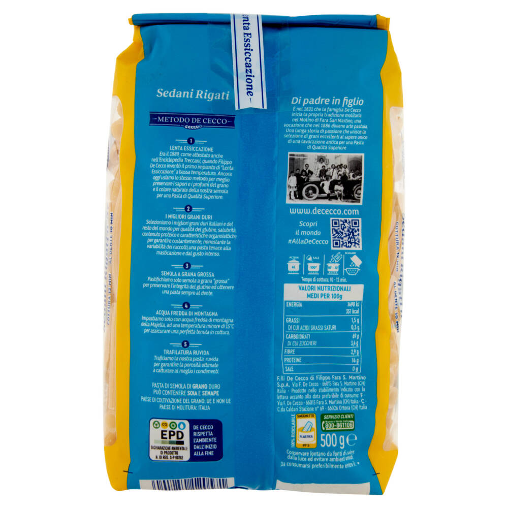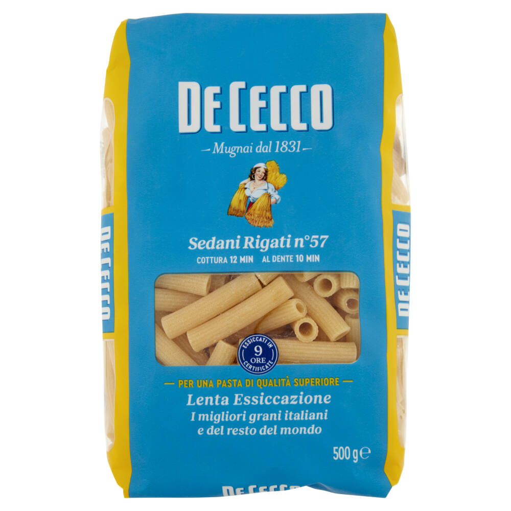 Cottura 12 min - Al dente 10 min Essiccati in 9 ore certificate Per una pasta di qualità superiore Lenta Essiccazione I migliori grani italiani e del resto del mondo