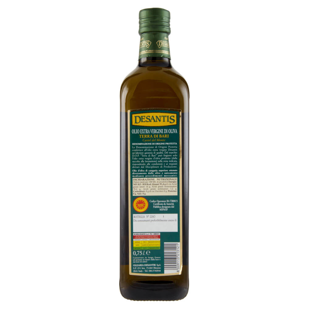 La Denominazione di Origine Protetta conferisce all'olio extra vergine Desantis un'ulteriore garanzia di qualità. Del marchio D.O.P. "Terra di Bari" può fregiarsi solo l'olio extra vergine d'oliva prodotto (dalla raccolta alla lavorazione) nella zona indicata, rispondendo alle condizioni e ai requisiti dettati dal Disciplinare di Produzione.