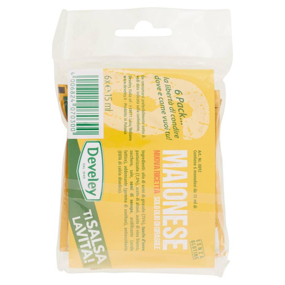Senza glutine Contiene 6 monodosi da 15 ml di Maionese - nuova ricetta - solo olio di girasole