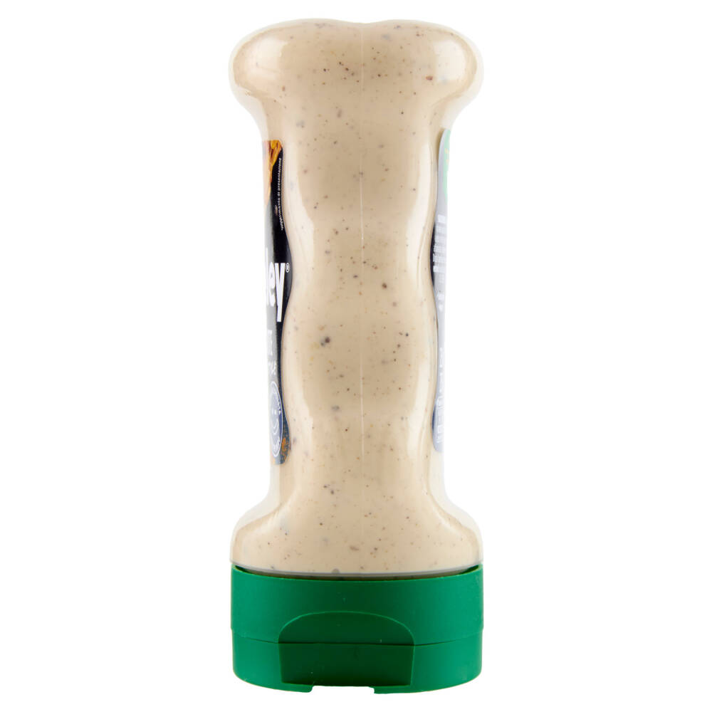 Acqua Olio di colza Zucchero Purea di mele (purea di mele, zucchero) Aceto di alcool Amido modificato Aceto di mele Pepe nero Spezie (con senape) Sale Maltodestrina affumicata Addensante (gomma di xanthan)