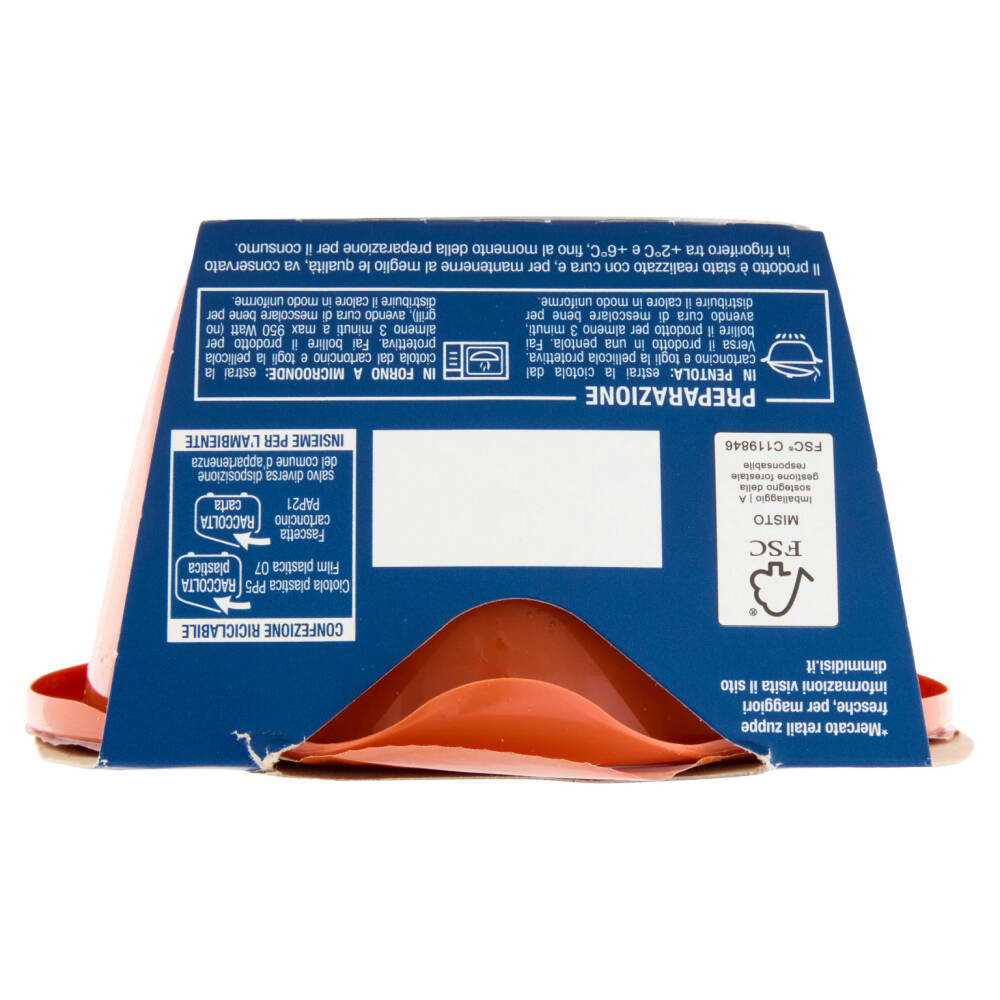 In pentola: estrai la ciotola dal cartoncino e togli la pellicola protettiva. Versa il prodotto in una pentola. Fai bollire il prodotto per almeno 3 minuti, avendo cura di mescolare bene per distribuire il calore in modo uniforme.