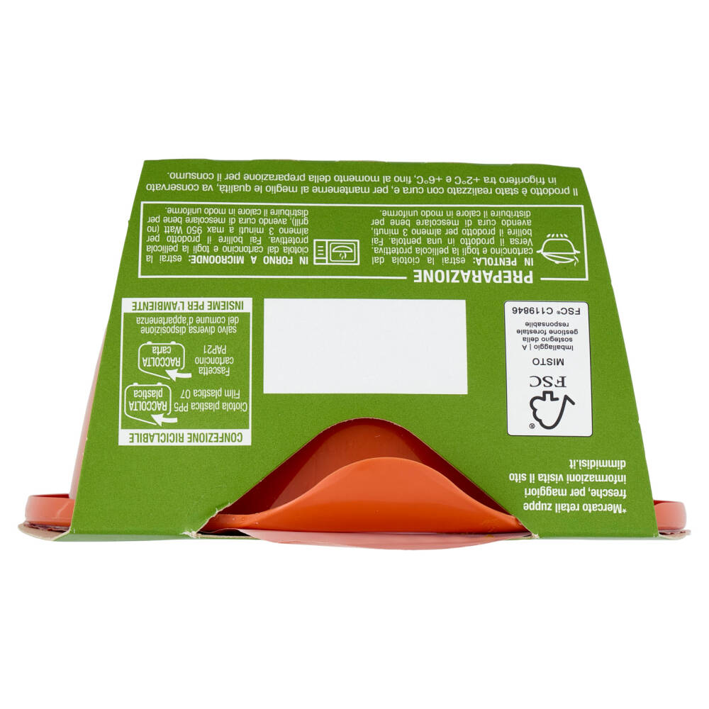 In pentola: estrai la ciotola dal cartoncino e togli la pellicola protettiva. Versa il prodotto in una pentola. Fai bollire il prodotto per almeno 3 minuti, avendo cura di mescolare bene per distribuire il calore in modo uniforme.