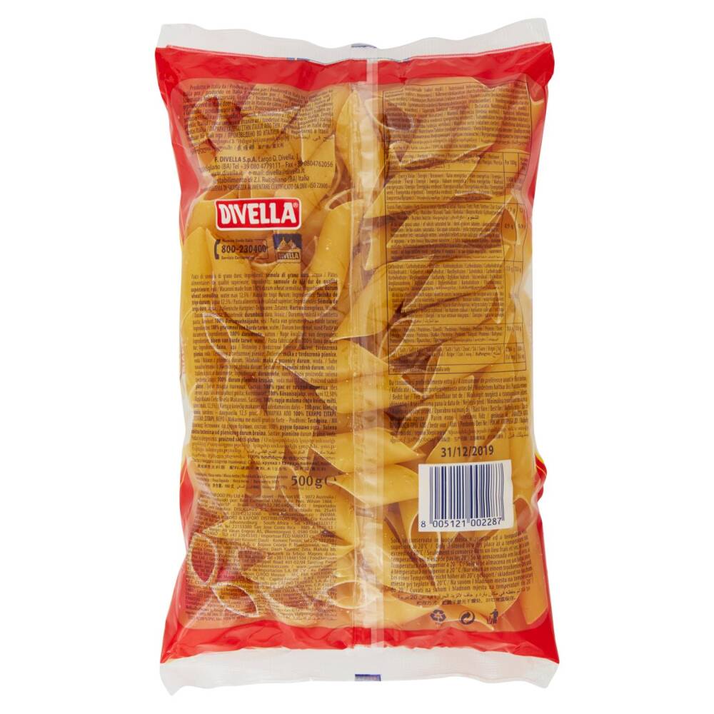 Prodotto in Italia da F. Divella S.p.A. Largo D. Divella, 1 70018 Rutigliano (BA) nello stabilimento di Z.I. Rutigliano (BA) Italia Azienda con sistema di sicurezza alimentare certificato da DNV=ISO 22000=