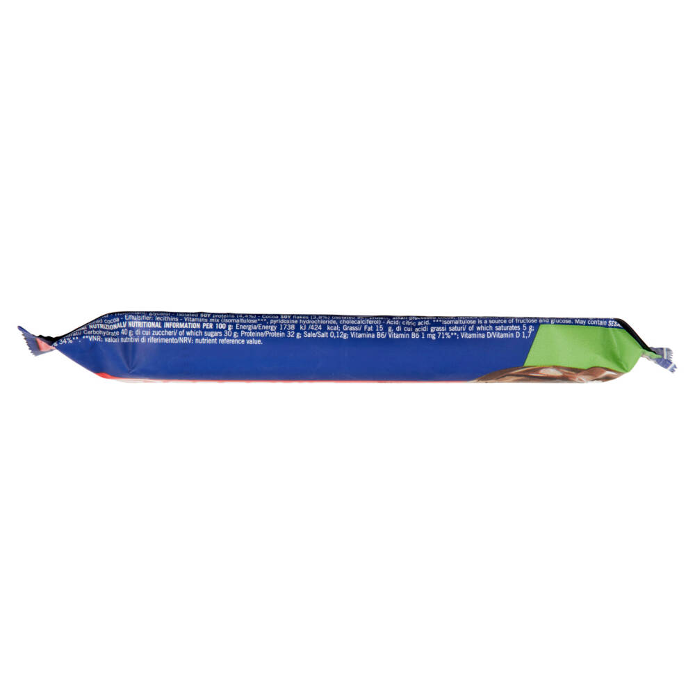 Sciroppo di glucosio-fruttosio Proteine isolate del latte (28,2%) Cioccolato al latte (20%) (zucchero, burro di cacao, latte in polvere, pasta di cacao, siero di latte in polvere, emulsionante: lecitine (da soia), estratto di vaniglia) Burro di cacao Umidificante: glicerolo Proteine isolate di soia (4,4%) Estrusi di soia al cacao (3,8%) (proteine isolate di soia, cacao processato con alcali, amido di tapioca) Nocciole (2,5%) Aromi (contiene arachidi, frutta a guscio) Cacao magro Emulsionante: lecitine Mix vitamine (isomaltulosio***, cloridrato di piridossina, colecalciferolo) Acidificante: acido citrico ***L'isomaltulosio è una fonte di glucosio e fruttosio Può contenere tracce di semi di sesamo