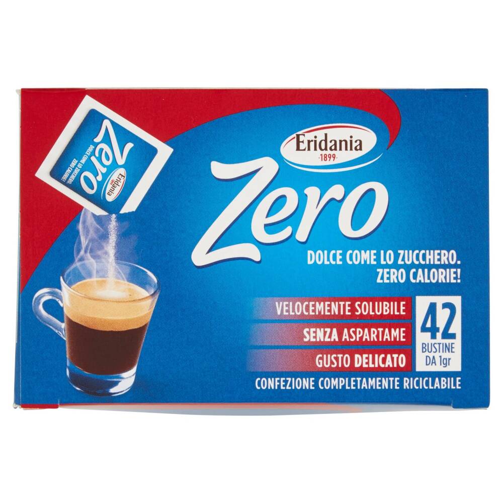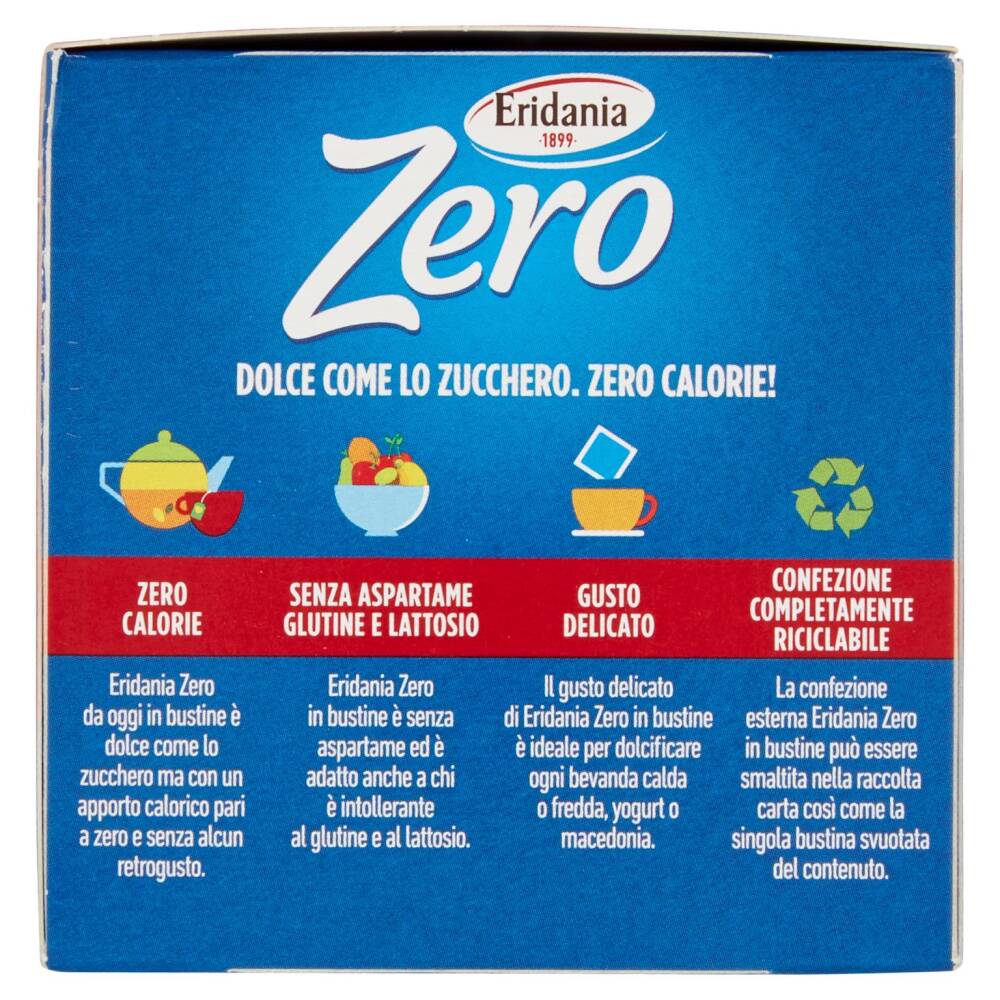 Eridania Zero in bustine è senza aspartame ed è adatto anche a chi è intollerante al glutine e al lattosio.