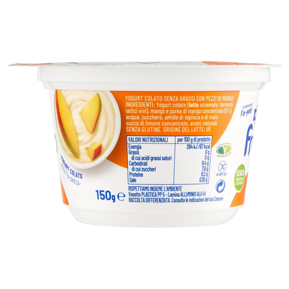 Yogurt colato senza grassi con pezzi di mango