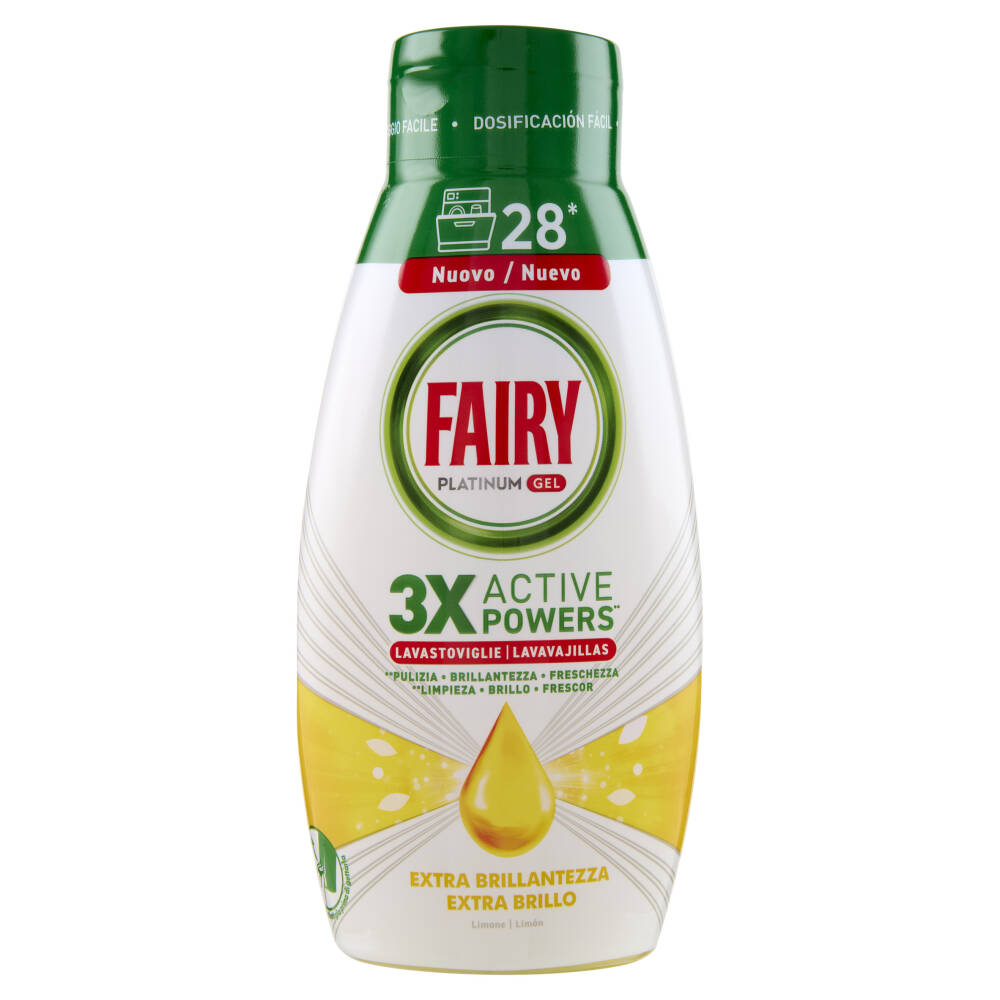 Dosaggio facile 28* Nuovo 3X Active powers** *504ml corrispondono a 28 lavaggi con dosaggio piatti poco sporchi, 18 lavaggi con dosaggio piatti mediamente/molto sporchi **Pulizia - Brillantezza - Freschezza