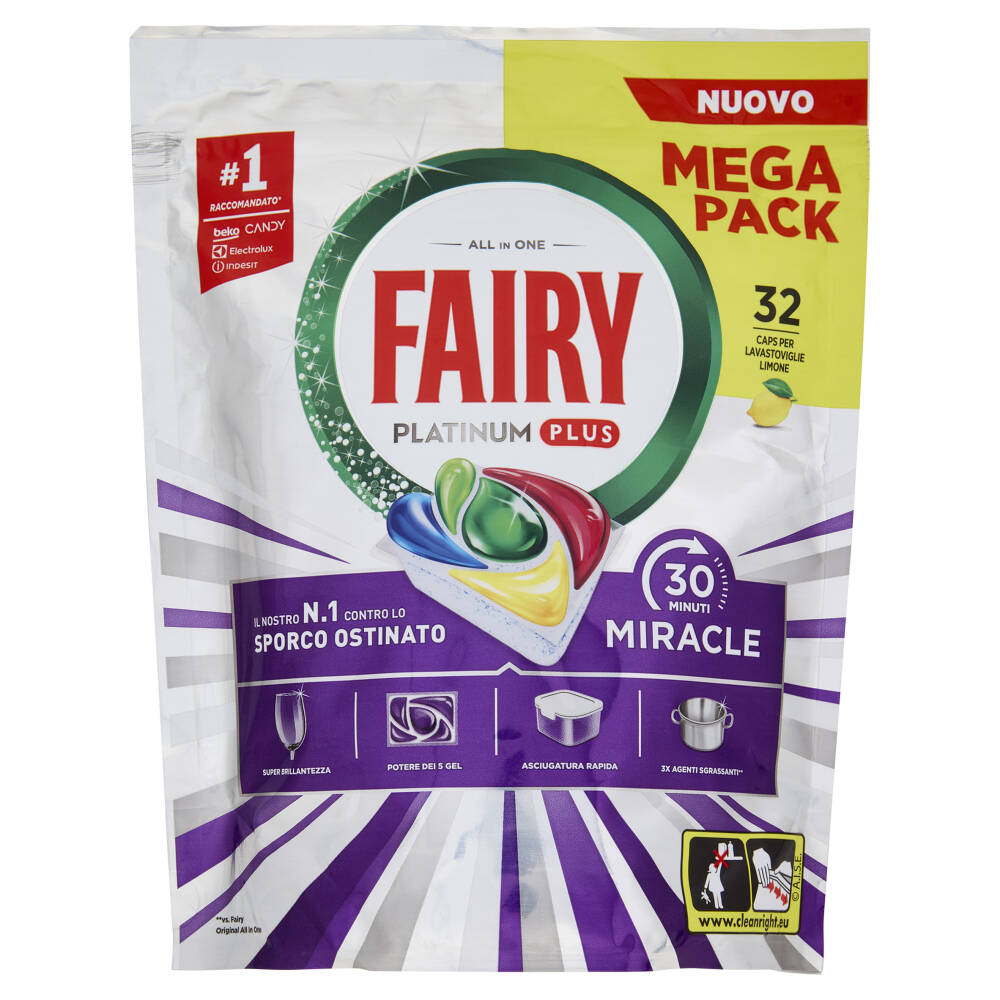 Nuovo Mega pack #1 Raccomandato* | beko, Candy, Electrolux, Indesit 32 Caps per lavastoviglie limone Il nostro N. 1 contro lo sporco ostinato 30 Minuti Miracle Super brillantezza Potere dei 5 gel Asciugatura rapida 3x Agenti sgrassanti** *Fairy è la marca di detersivo più raccomandata, basato sulle quote di mercato locali dei produttori di lavastoviglie che consigliano Fairy **vs. Fairy Original All in One