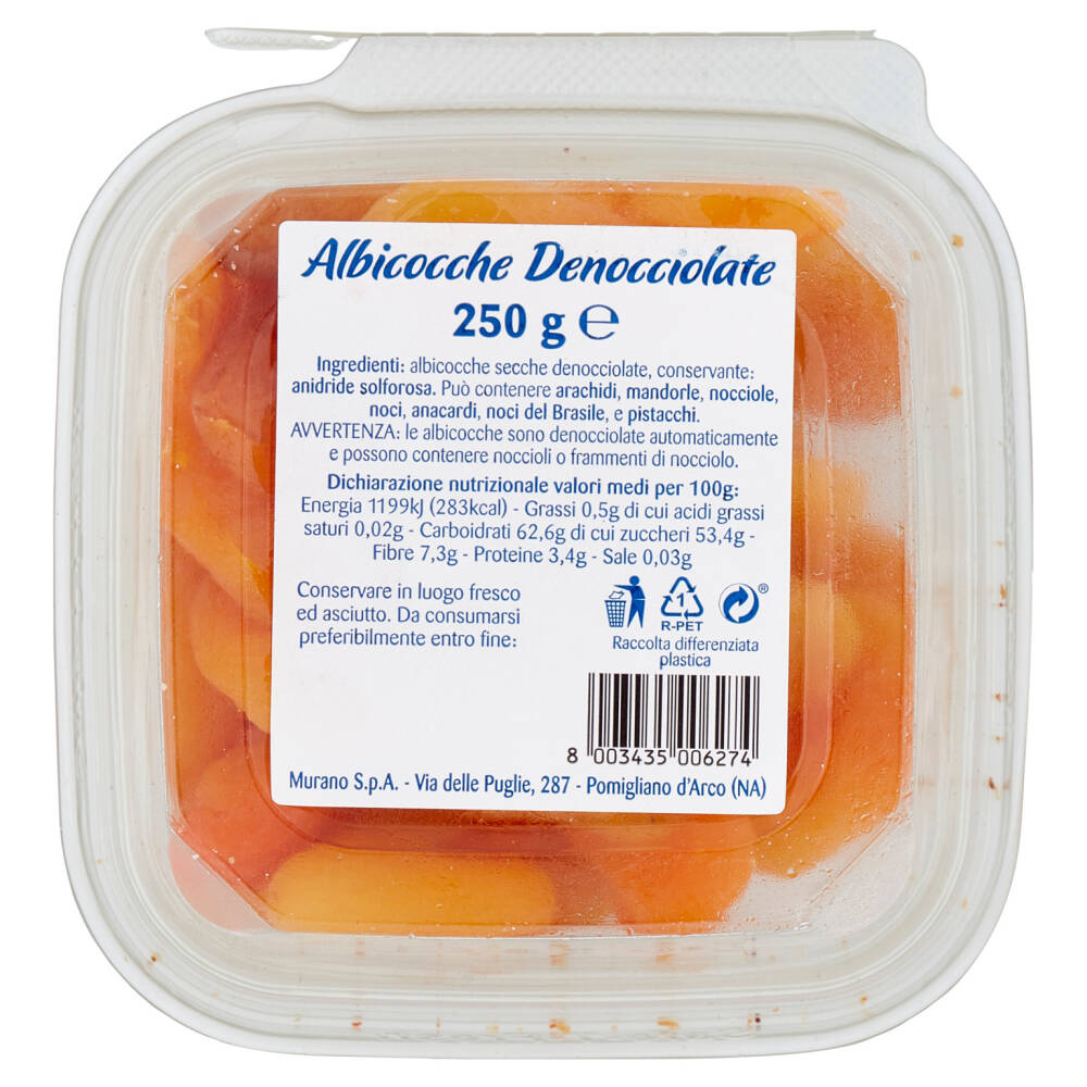 Albicocche secche denocciolate Conservante: anidride solforosa Può contenere arachidi, mandorle, nocciole, noci, anacardi, noci del Brasile, e pistacchi