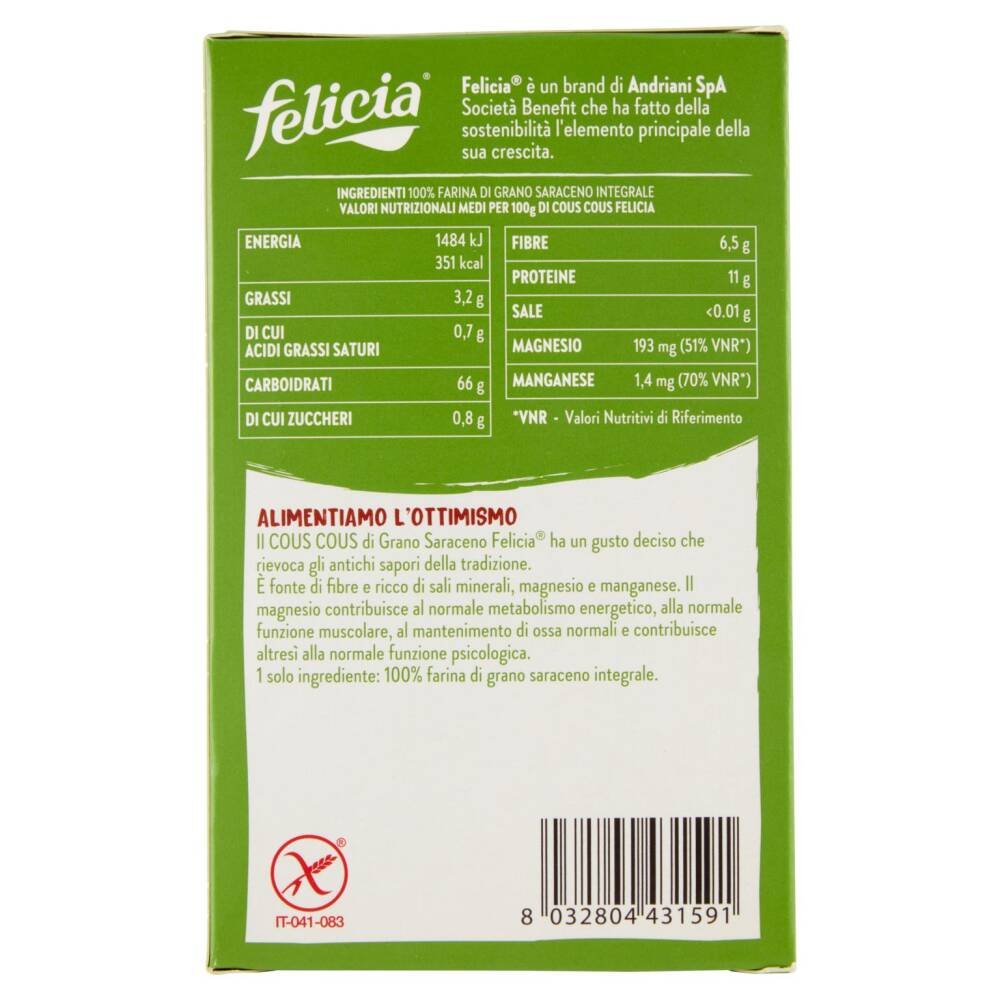 | Valori nutrizionali medi per 100g di cous cous Felicia | VNR* | |