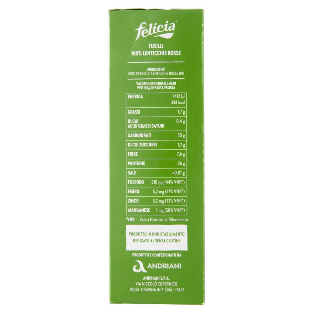 | Valori nutrizionali medi per 100g di pasta felicia | VNR* | |