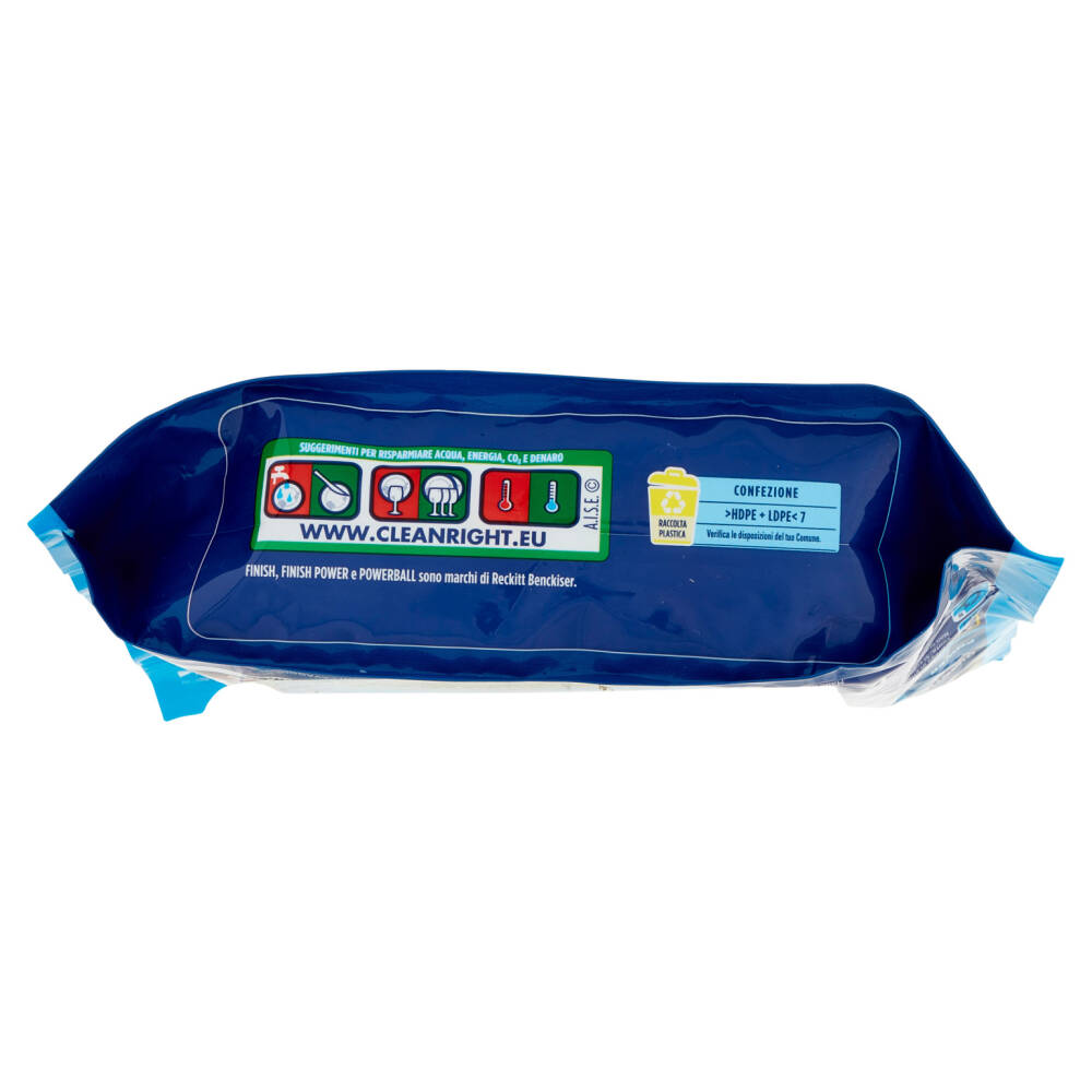 Se la tab non entra nel contenitore, consultare il fornitore della lavastoviglie o il manuale delle istruzioni. Per ottenere migliori risultati nei cicli brevi, posizionare la tab Finish Power sul fondo della lavastoviglie vicino al filtro. Per proteggere la qualità delle tabs Finish Power, richiudi sempre la confezione dopo l'uso e conservala in un luogo fresco e asciutto. La funzione integrata del sale è efficace con acqua dolce, media e dura fino a 26°e. Se l'acqua è molto dura, le prestazioni possono essere migliorate aggiungendo i Cristalli di Sale Finish. Idoneo alla fossa biologica. Per ottimizzare i risultati di asciugatura, usa Finish Brillasciuga. Questa confezione è riciclabile.
