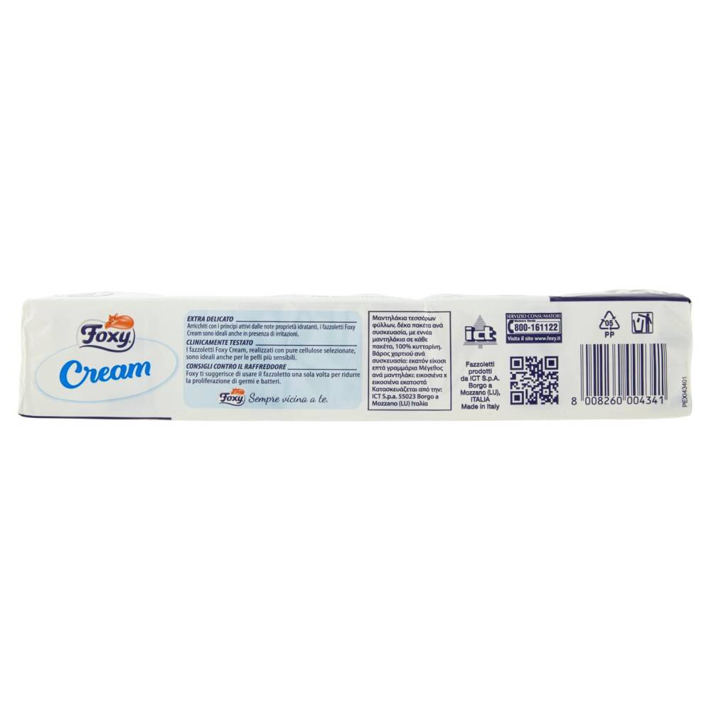 I fazzoletti Foxy Cream, realizzati con pure cellulose selezionate, sono ideali anche per le pelli più sensibili.