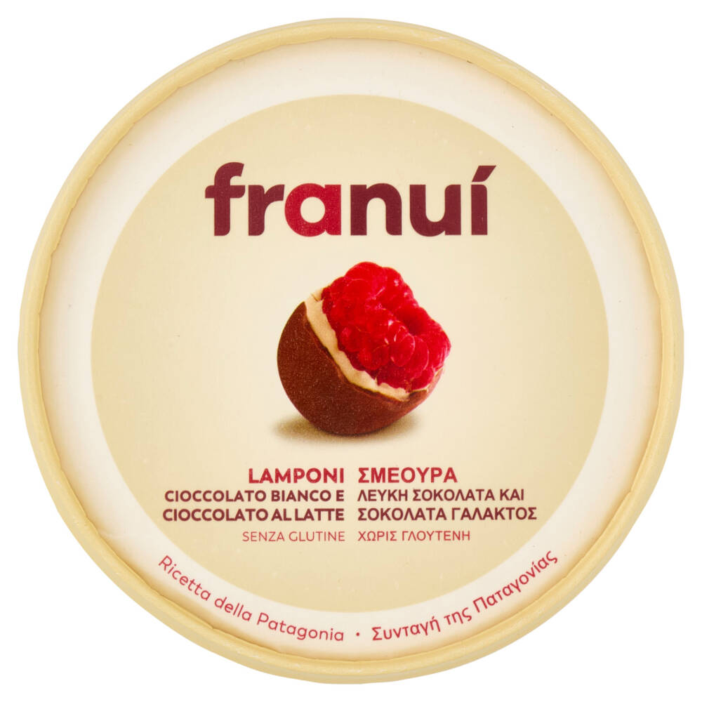 Lamponi freschi congelati ricoperti di cioccolato bianco e cioccolato al latte