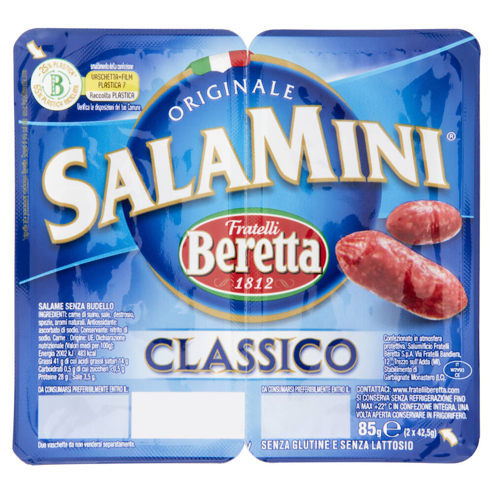BGreen - 25% Plastica* - 65% Plastica riciclata Senza glutine e senza lattosio *rispetto alle precedenti confezioni Beretta. Scopri di più sul sito www.fratelliberetta.com