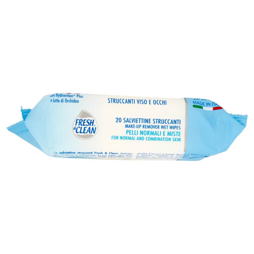 La formula è anche arricchita con Latte di Orchidea e Vitamina E e dona purezza, nutrimento e benessere alla pelle. Rimuovono efficacemente anche il trucco a lunga durata e Waterproof. Il tessuto, morbido e delicato, non contiene plastica, è 100% di origine naturale ed è biodegradabile. Usate quotidianamente su viso e occhi, lasciano la pelle tonica e luminosa. Non necessitano di risciacquo. Le salviettine struccanti Fresh & Clean non contengono alcool e oli minerali. Sono inoltre senza SLES, SLS e saponi alcalini. Sono dermatologicamente ed oftalmologicamente testate.