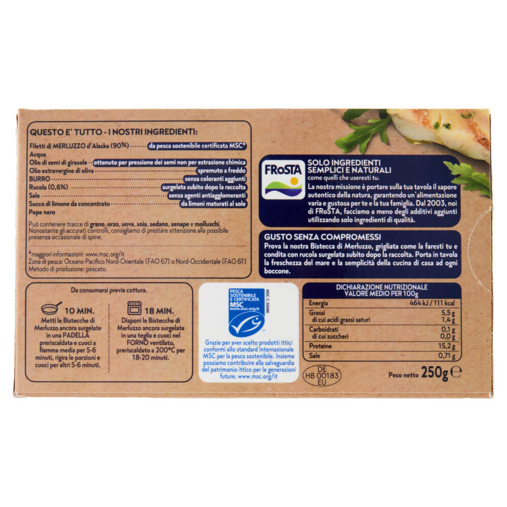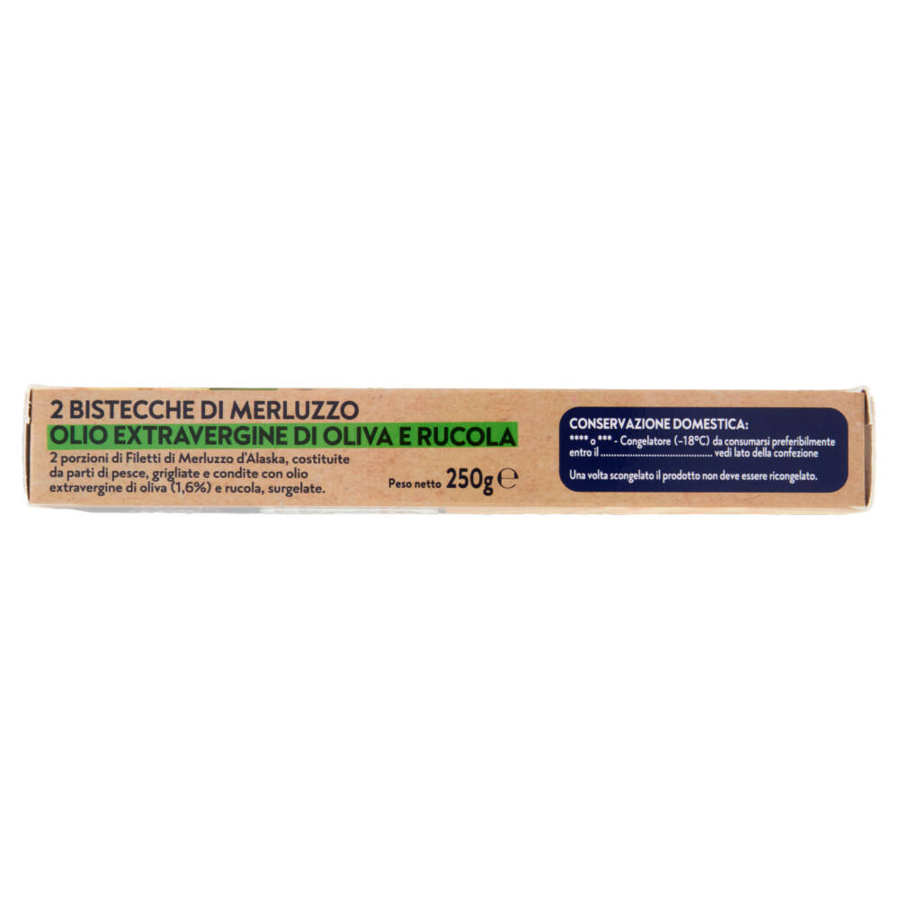 Prova la nostra Bistecca di Merluzzo, grigliata come la faresti tu e condita con rucola surgelata subito dopo la raccolta. Porta in tavola la freschezza del mare e la semplicità della cucina di casa ad ogni boccone.