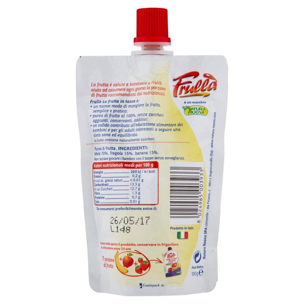 Novità 100% Frutta Frullata Senza zuccheri aggiunti Senza conservanti Contiene naturalmente zuccheri La frutta in tasca Prodotto in Italia