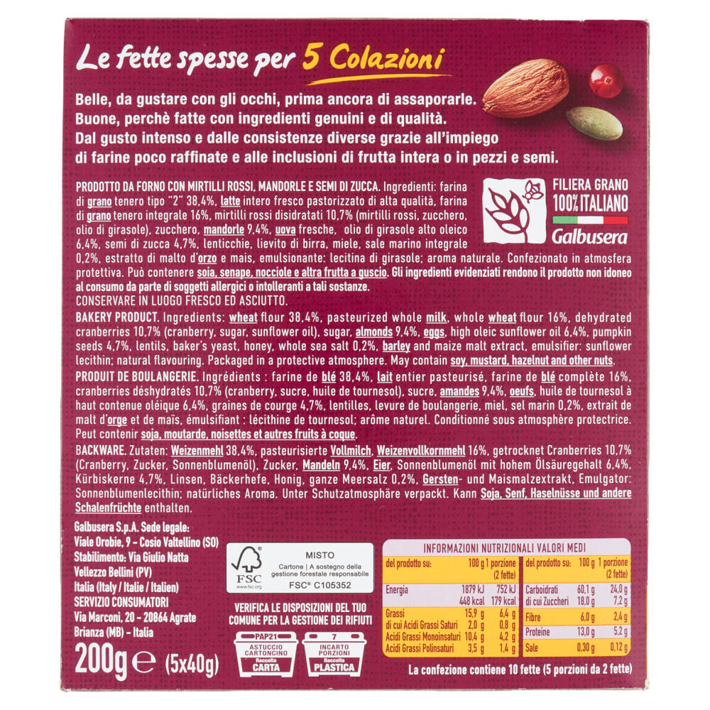 | La confezione contiene 10 fette (5 porzioni da 2 fette) |