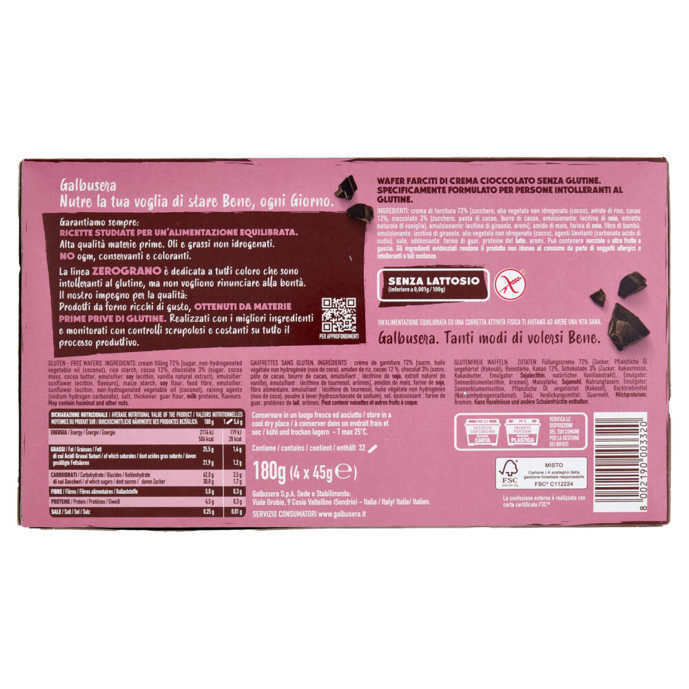 Wafer farciti di crema cioccolato senza glutine. Specificamente formulato per persone intolleranti al glutine