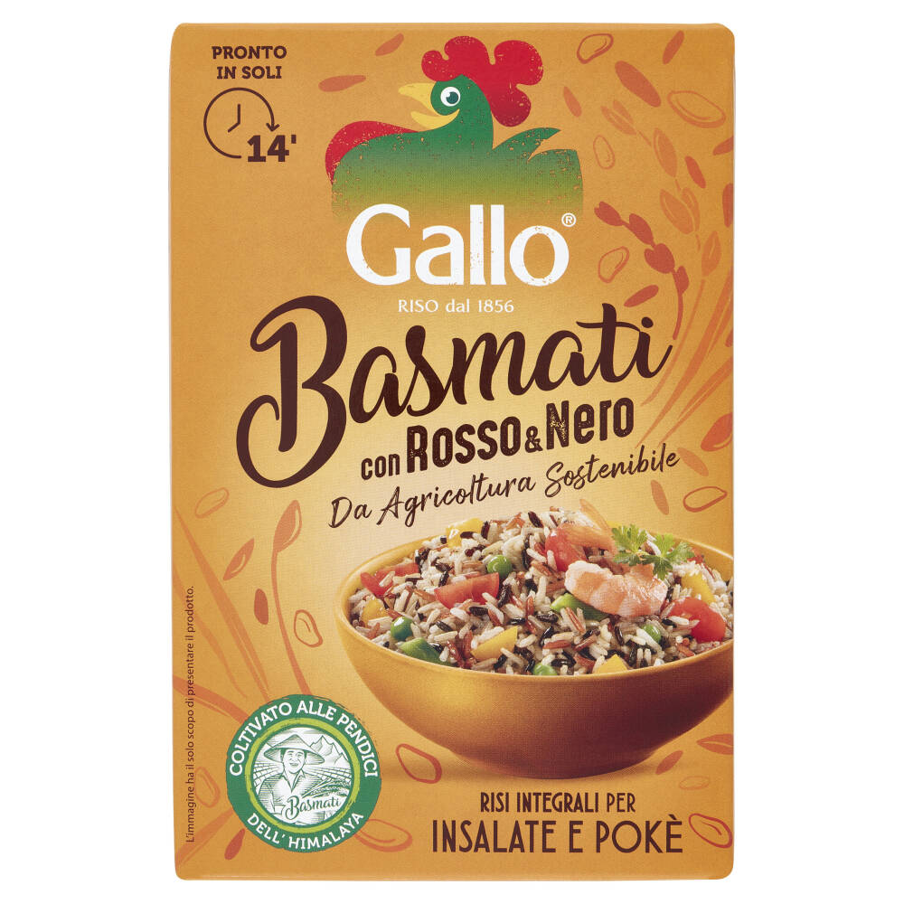 Gallo Basmati con Rosso&Nero è una miscela equilibrata in cui il gusto leggero e soffice del Basmati diventa il compagno perfetto del riso nero, dalle note di pane appena sfornato, e del riso rosso dalla consistenza sfiziosa. Un mix gourmet dalle infinite possibilità, ideale per insalate colorate e pokè.