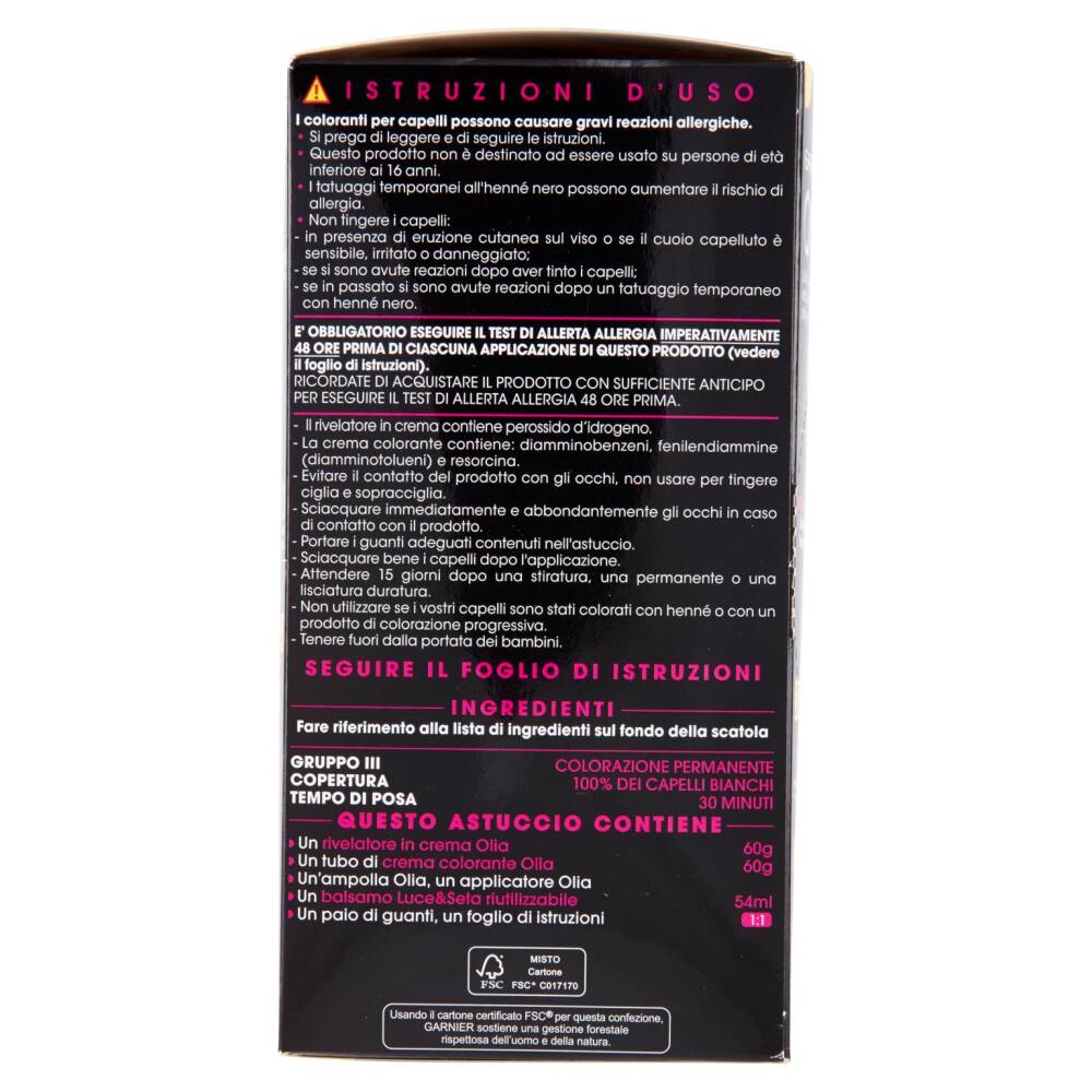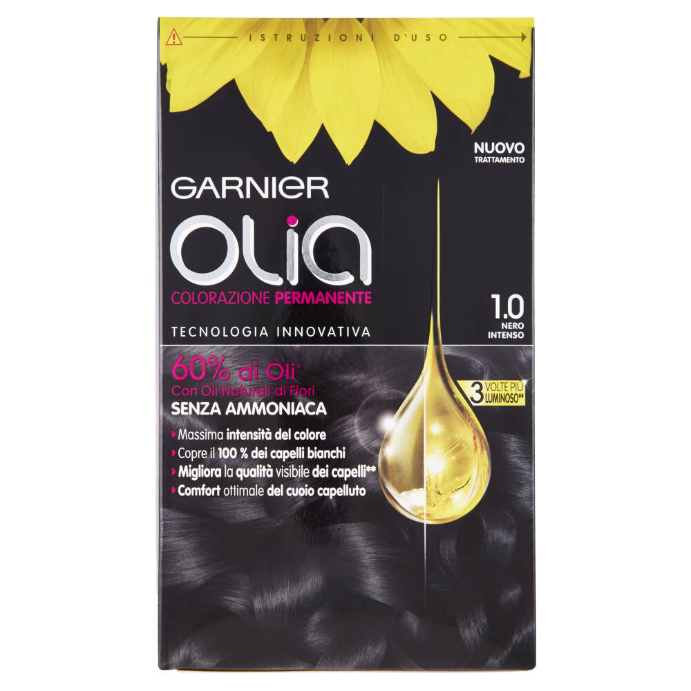 Nuovo trattamento Tecnologia innovativa 60% di Oli* Con Oli Naturali di Fiori Senza ammoniaca 3 Volte più luminoso** Massima intensità del colore Copre il 100 % dei capelli bianchi Migliora la qualità visibile dei capelli** Comfort ottimale del cuoio capelluto *Nella crema colorante **Test strumentali