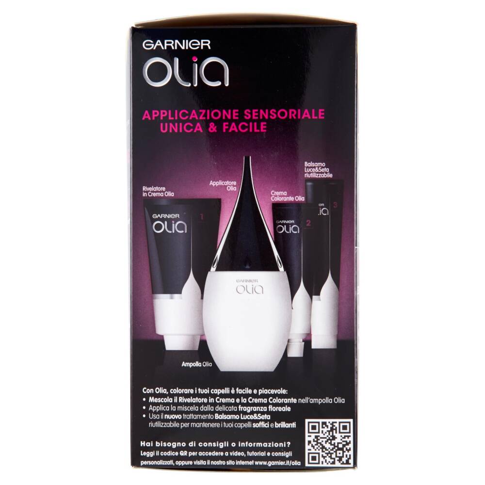 Leggi il codice QR per accedere a video, tutorial e consigli personalizzati, oppure visita il nostro sito internet www.garnier.it/olia