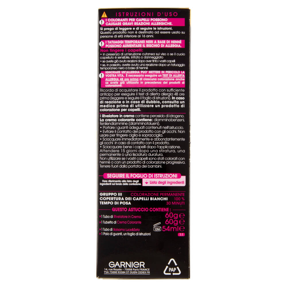 L'olio può essere più di un trattamento per i tuoi capelli. Per la prima volta Garnier lo ha concentrato nel cuore della sua formula per offrire un'intensità massima del colore e creare La Nuova Generazione del Colore Massima intensità del colore - Colore ricco e brillante - Tenuta a lunga durata Migliora la qualità visibile dei capelli - Più soffici, 35% più morbidi** Applicazione sensoriale unica - Comfort ottimale del cuoio capelluto - Crema vellutata che non cola - Delicata fragranza floreale **Test strumentali. Applicazione Sensoriale Unica & Facile Con Olia, colorare i tuoi capelli è facile e piacevole: - Mescola il Rivelatore in Crema e la Crema Colorante nell'ampolla Olia - Applica la miscela dalla delicata fragranza floreale - Usa il nuovo trattamento Balsamo Luce&Seta riutilizzabile per mantenere i tuoi capelli soffici e brillanti Hai bisogno di consigli o informazioni? Leggi il codice QR per accedere a video, tutorial e consigli personalizzati, oppure visita il nostro sito internet www.garnier.it/olia
