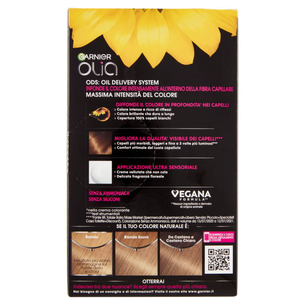 Leggi il codice QR per accedere a video, tutorial e consigli personalizzati, oppure visita il nostro sito internet www.garnier.it/olia