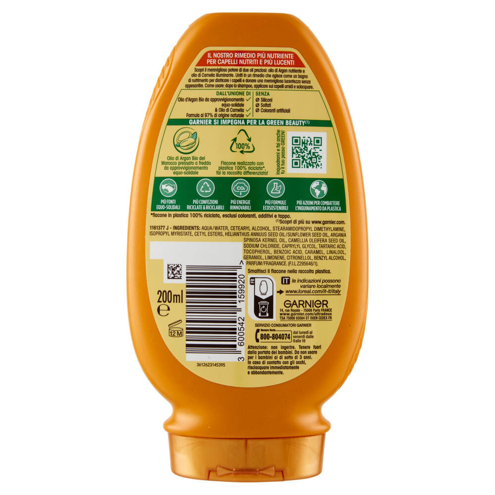 100% Plastica riciclata* Nuovo Balsamo nutriente Senza siliconi 97% Ingredienti di origine naturale Gli Oli Meravigliosi Argan & Camelia Argan del Marocco da commercio equo solidale Districa, nutre senza appesantire & ravviva la lucentezza *flacone in plastica 100% riciclata, esclusi coloranti, additivi e tappo