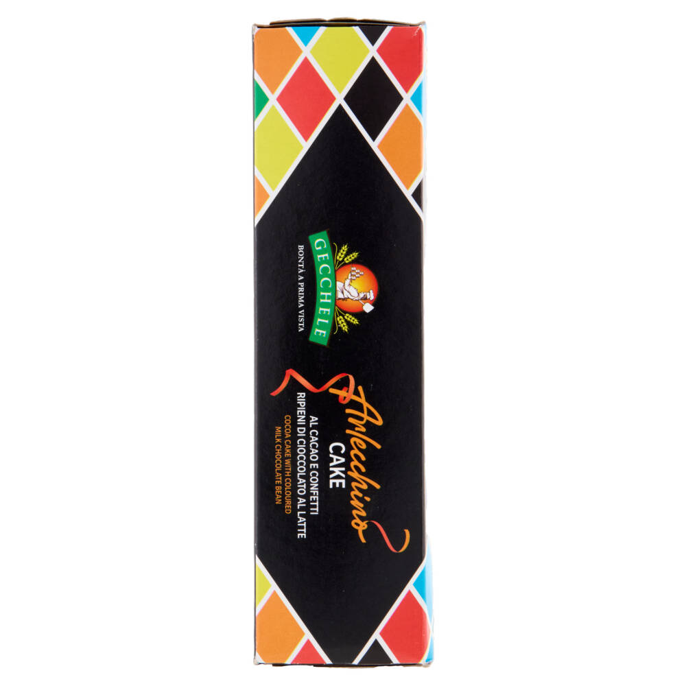 Confetti ripieni di cioccolato al latte 4% (zucchero, massa di cacao, burro di cacao, latte intero in polvere, amido, emulsionante: lecitine, agenti di rivestimento: gomma arabica, cera di carnauba, cera d'api; succhi concentrati di: uva, ravanello, ribes nero, limone, barbabietola rossa; estratto di cartamo, malto d'orzo, concentrato di alghe)